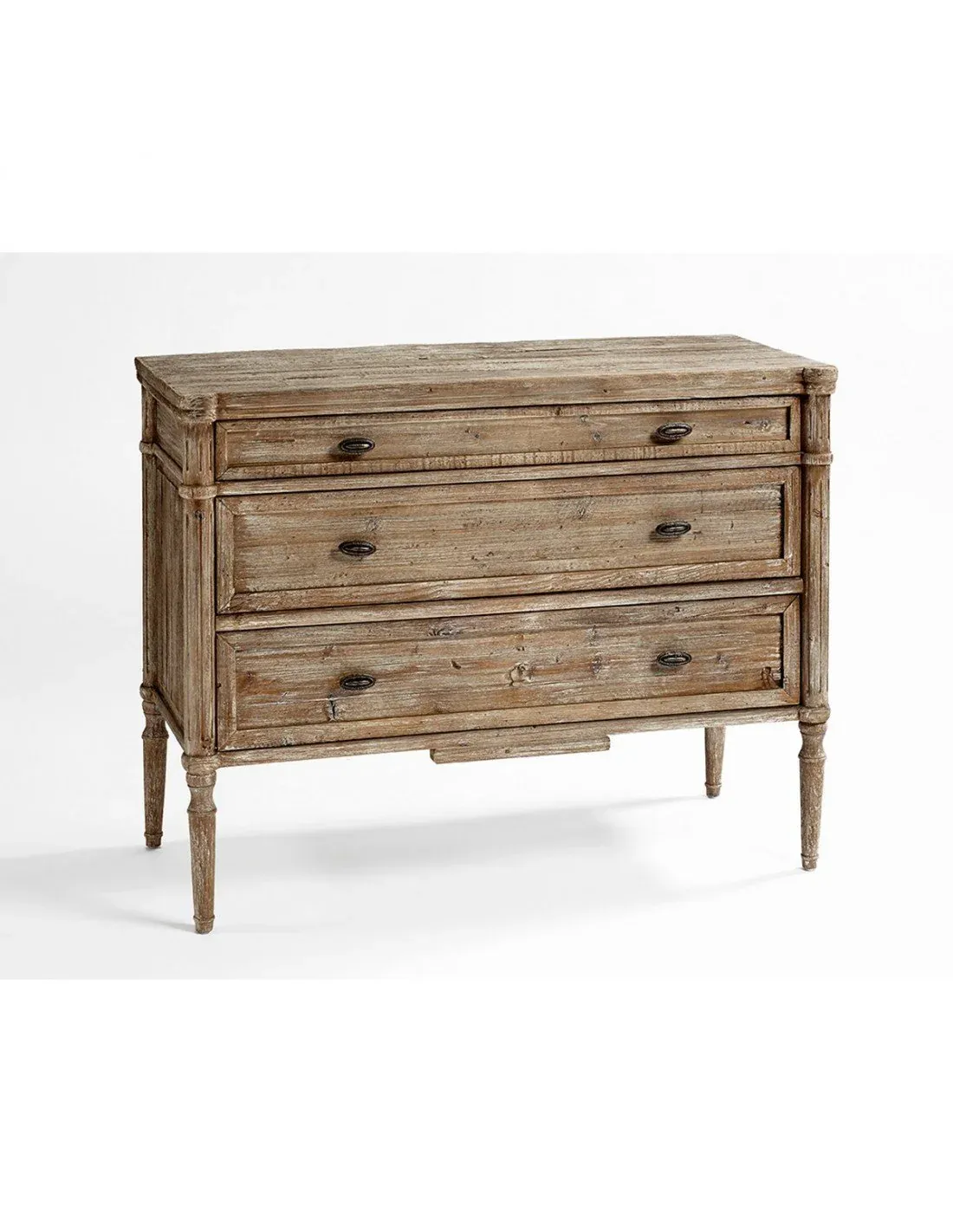 Cómoda fabricada en madera de roble en color natural y negro y estructura de patas en hierro color negro.