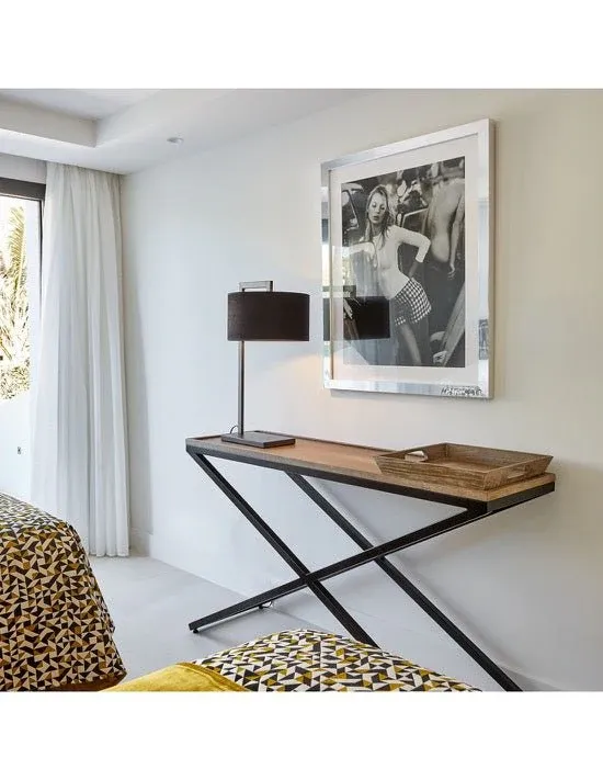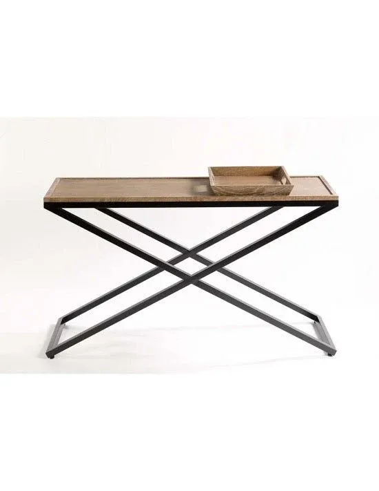 Mezcla perfecta con este mueble contemporáneo de madera de roble y metal. Consola que te sorprenderá por su aspecto moderno y sus acabados envejecidos. Esta consola de madera y metal es ideal en tu dormitorio o como consola de mueble de entrada, siendo muy práctica para dejar el correo, las llaves o poner los objetos decorativos que más te gusten. Consola sencilla y práctica.