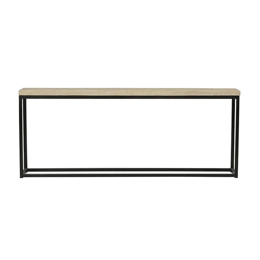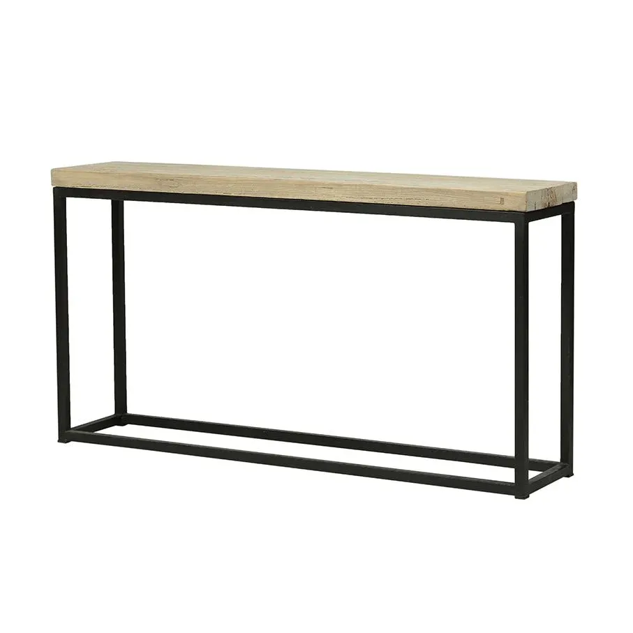 Consola de madera de pino en color natural fabricada en España. La parte inferior es de hierro color negro.