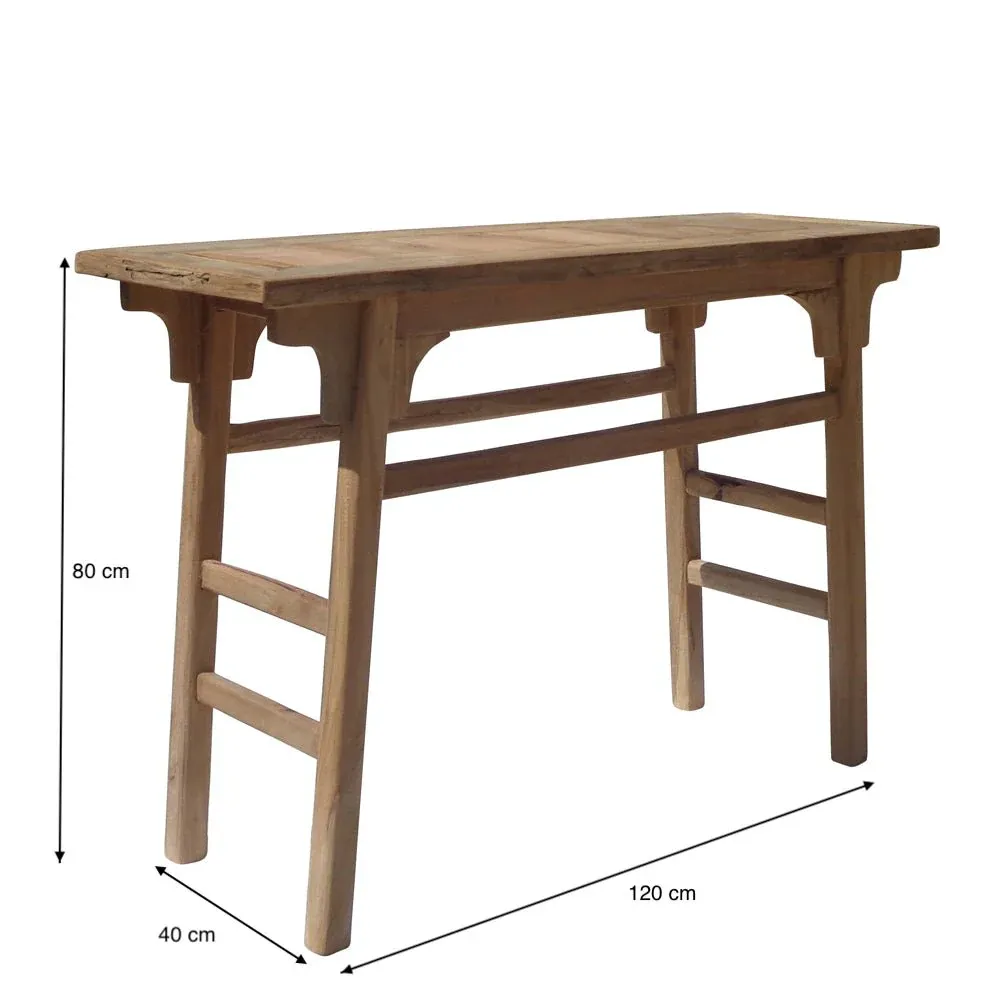 Preciosa consola fabricada en madera de teca reciclada en color natural.