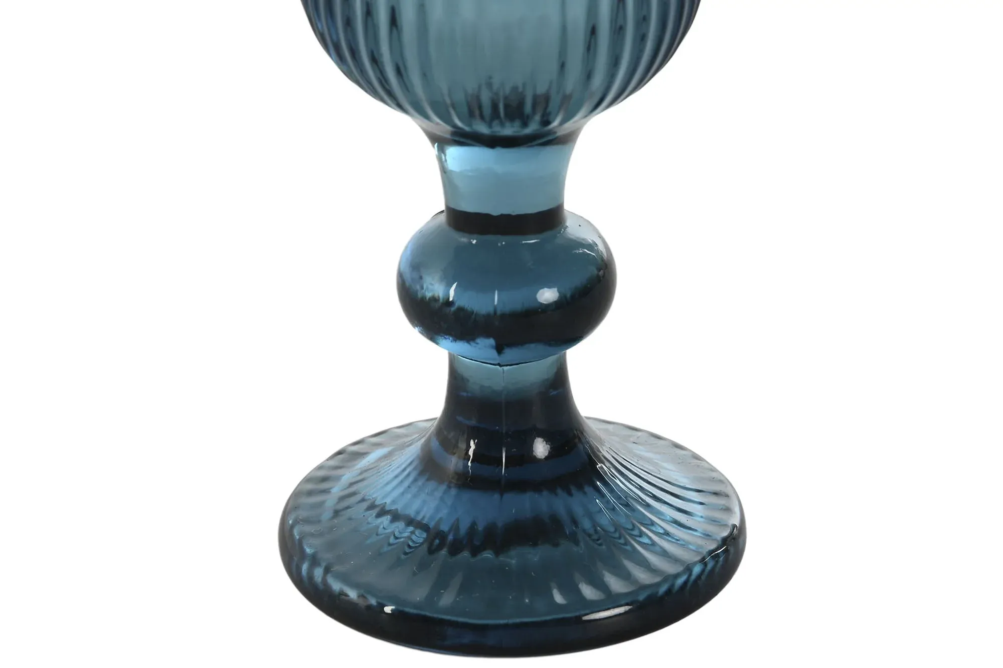 Copa con relieve rayada fabricada en cristal color azul. Disponible en diferentes tamaños.