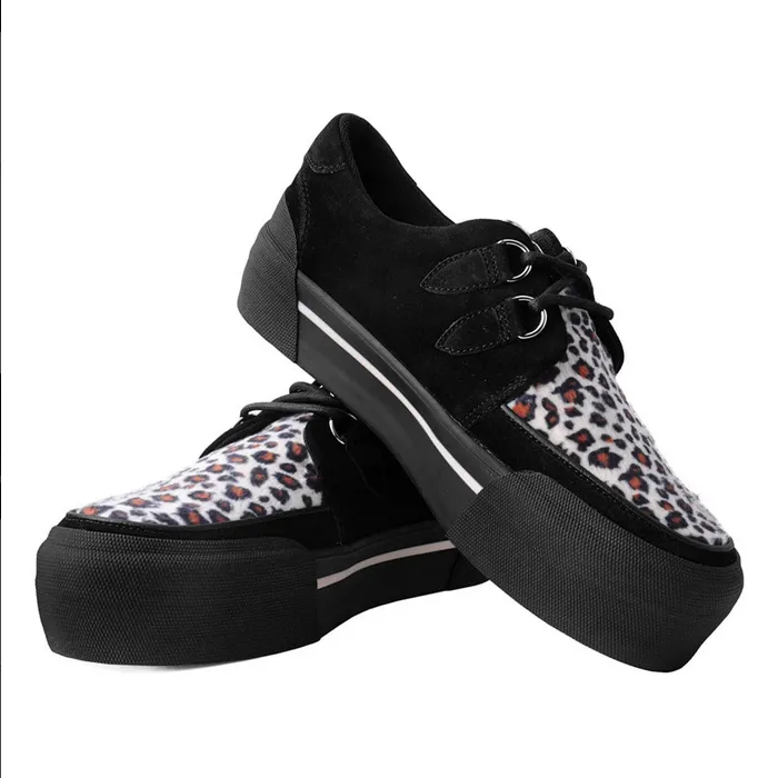 Nuestras zapatillas creeper apiladas en ante de leopardo son el elemento básico definitivo de T.U.K. Con una suela de plataforma resistente, estas versátiles creepers han sido construidas para el uso diario y la durabilidad. Úselo solo para obtener la zapatilla perfecta para todos los días o combínelo con sus accesorios T.U.K favoritos.