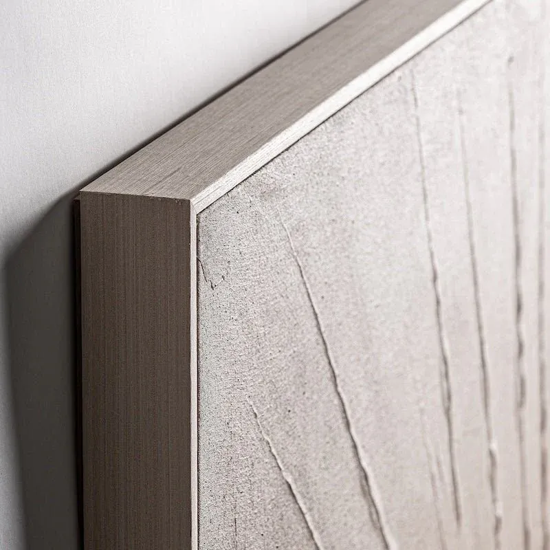 Lienzo de estilo contemporáneo, fabricado en lienzo en color beige con acabado artesanal, combinado con madera de pino en color marrón claro.