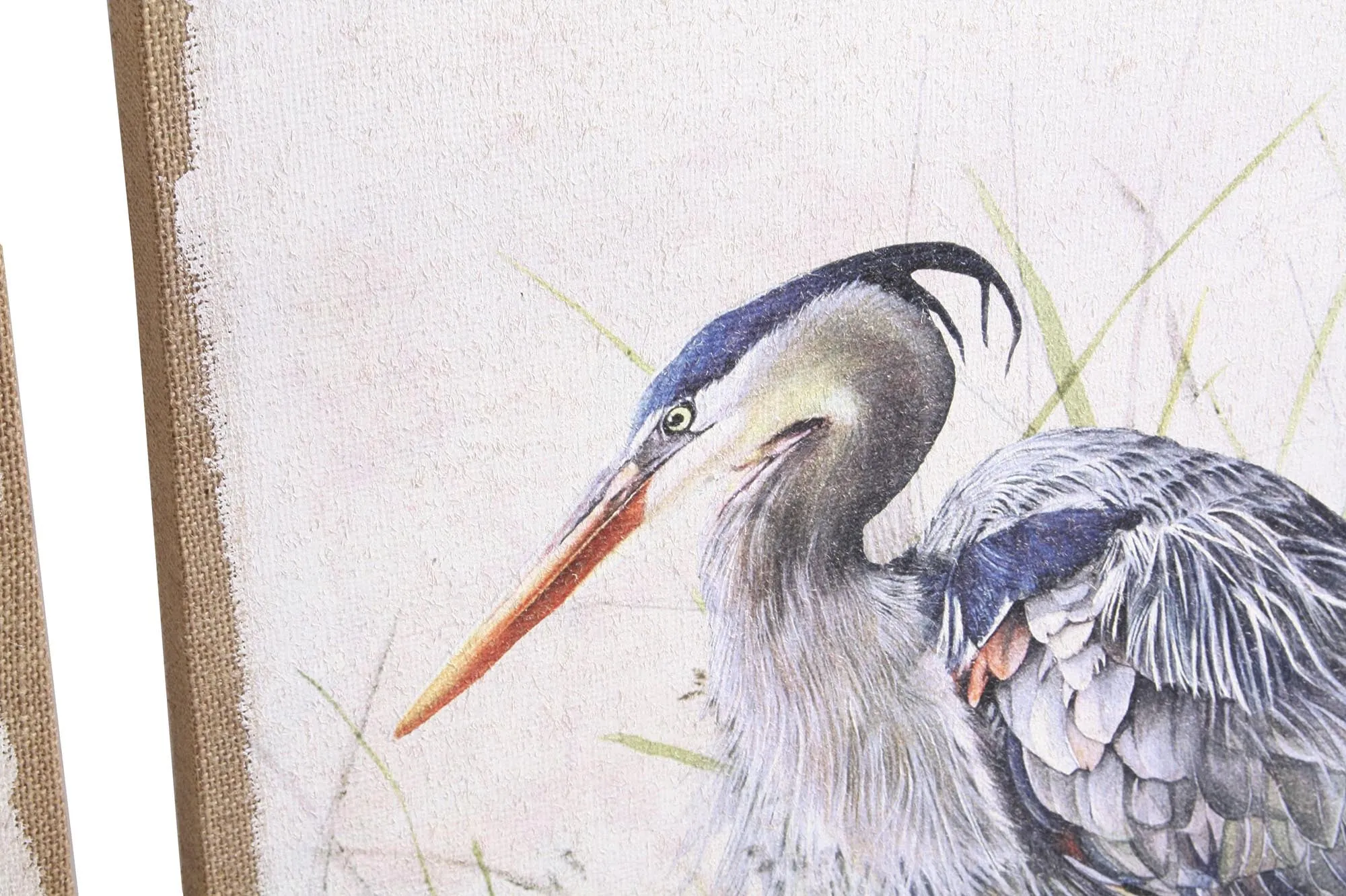 Precioso cuadro sobre lienzo con dibujo de garza con marco en madera color natural.