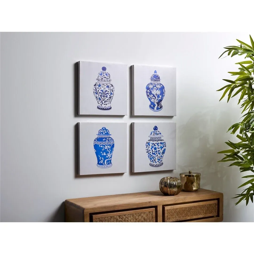 Lienzo de jarrones orientales con colores azul y blanco con 50% óleo.