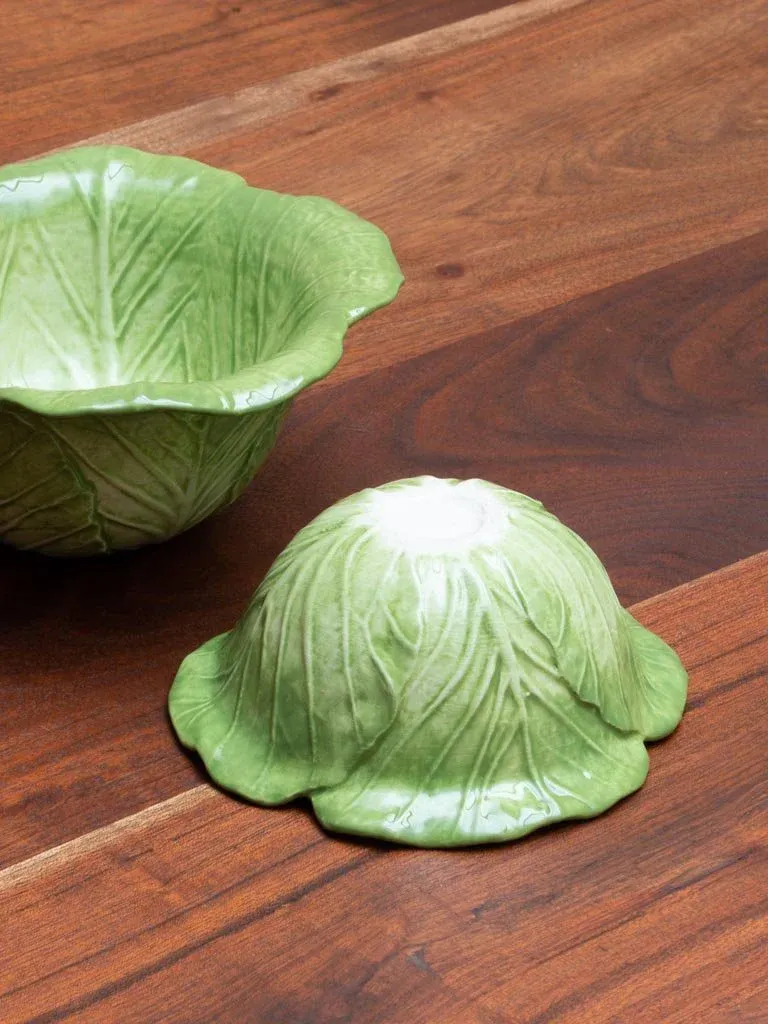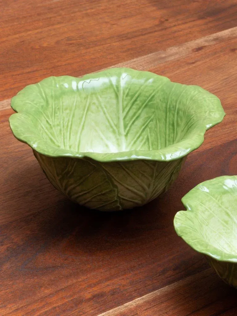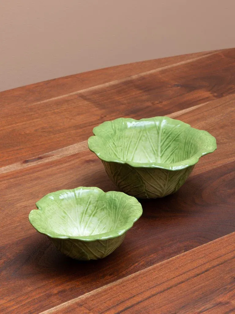 Preciosos cuencos con forma de hoja de repollo fabricado en cerámica de color verde. Disponible en dos medidas diferentes.