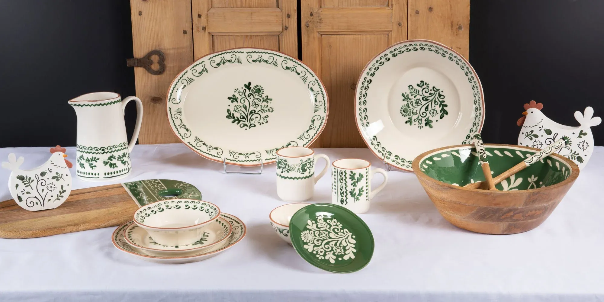 Preciosa ensaladera fabricada en loza de color blanco roto con detalles en verde.