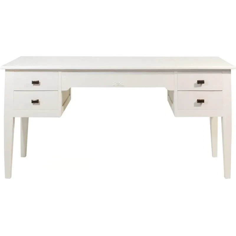 Precioso escritorio clásico de madera color blanco roto. Acabado artesanal mediante raspados e imperfecciones para dar aspecto romántico y antiguo.