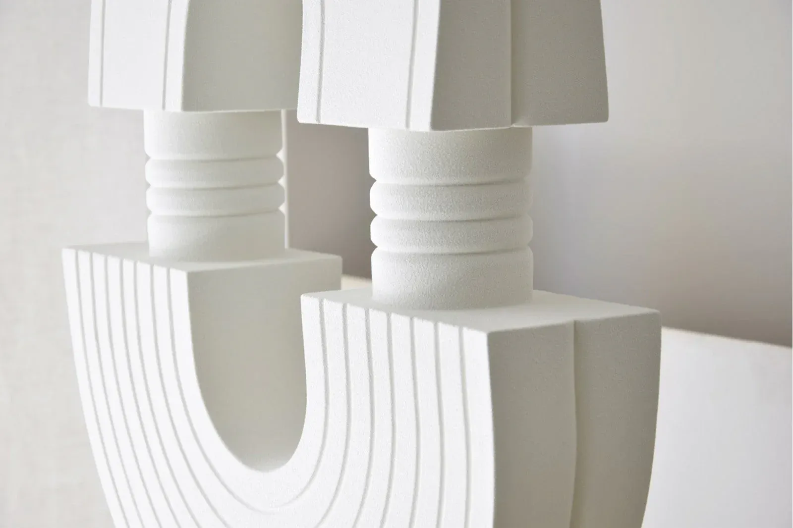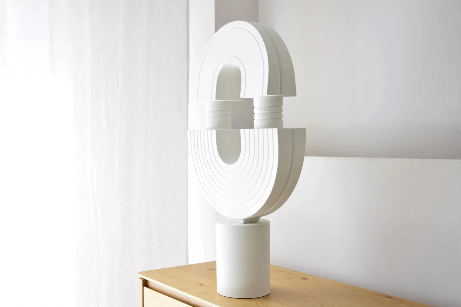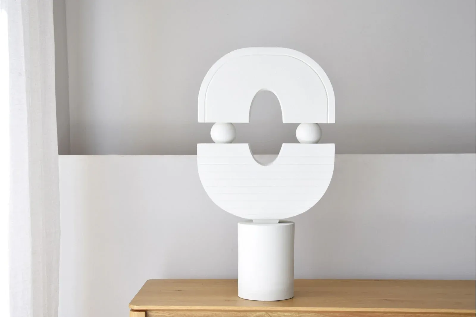 Original escultura realizada a mano en cerámica en color blanco roto acabado mate con una sutil textura, realizada de forma artesanal cocida a alta temperatura lo que hace que cada una de ellas sea única.