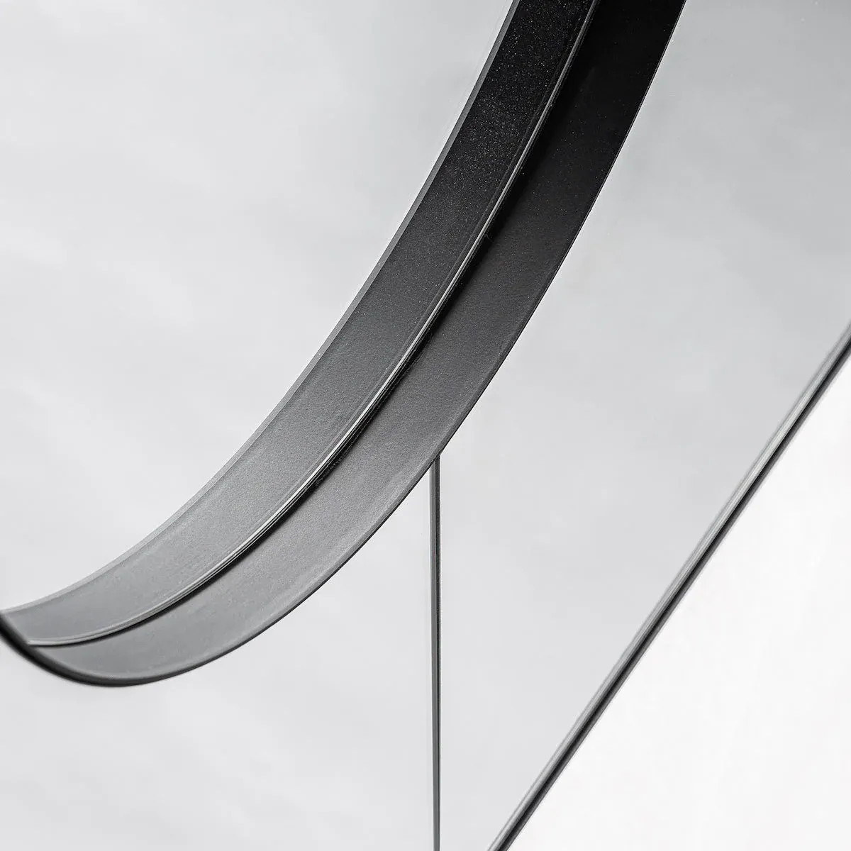 Espejo de estilo art deco, fabricado en madera dm en color negro, combinado con hierro en color negro y espejo.