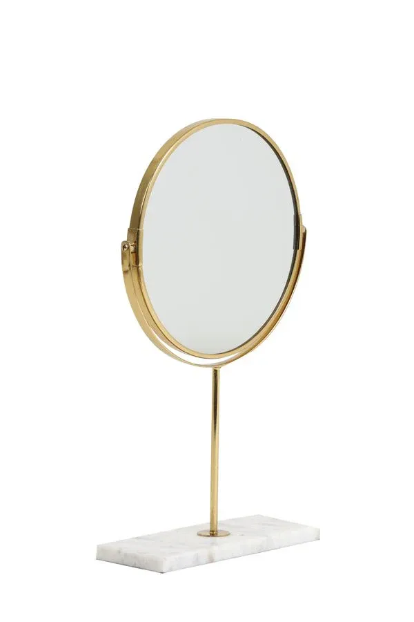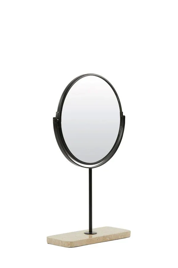 Precioso espejo sobre base de travertino color arena y negro o mármol blanco y oro.