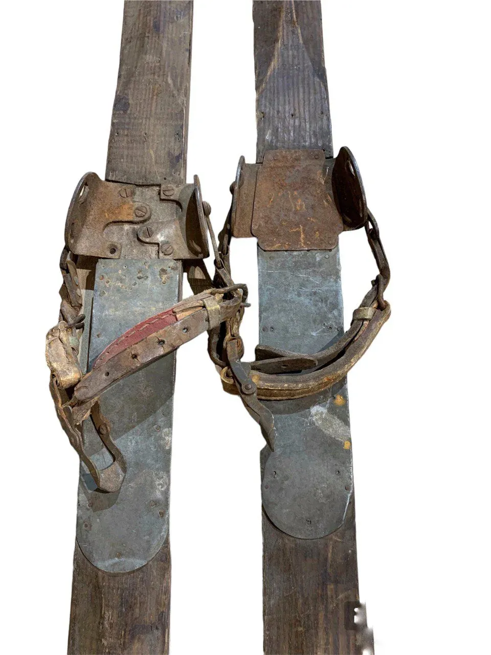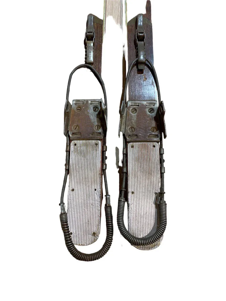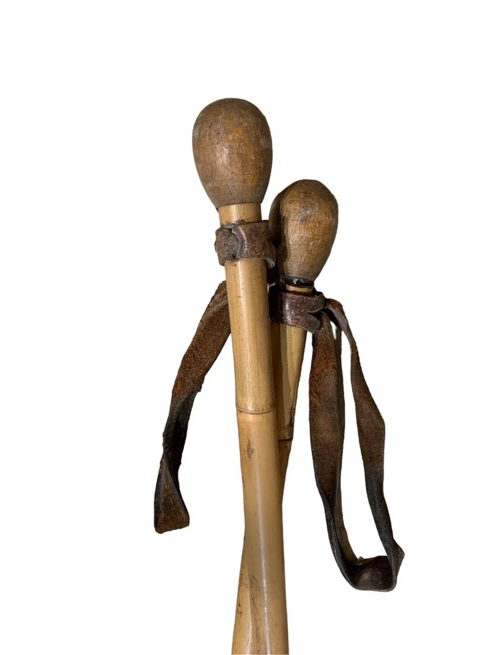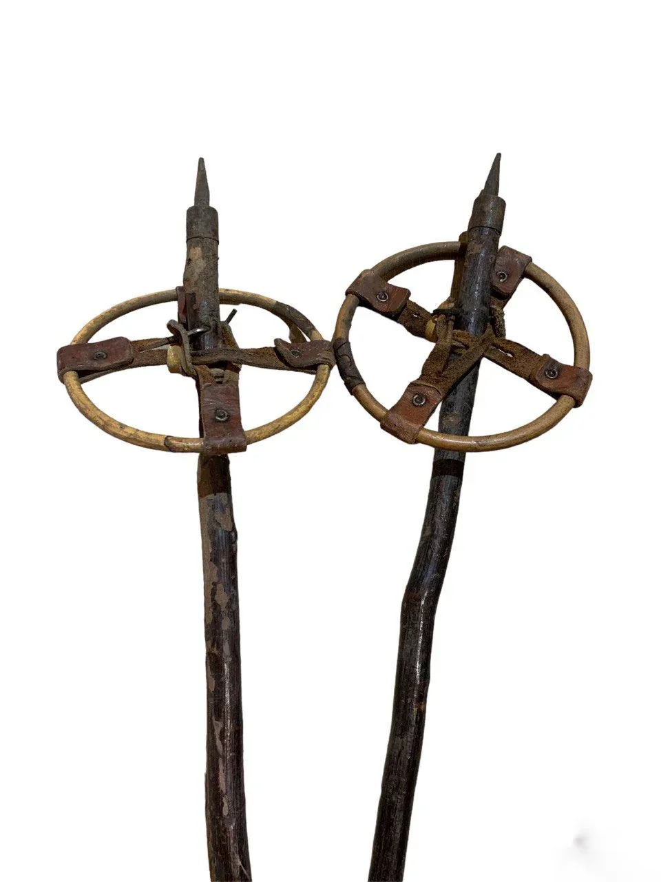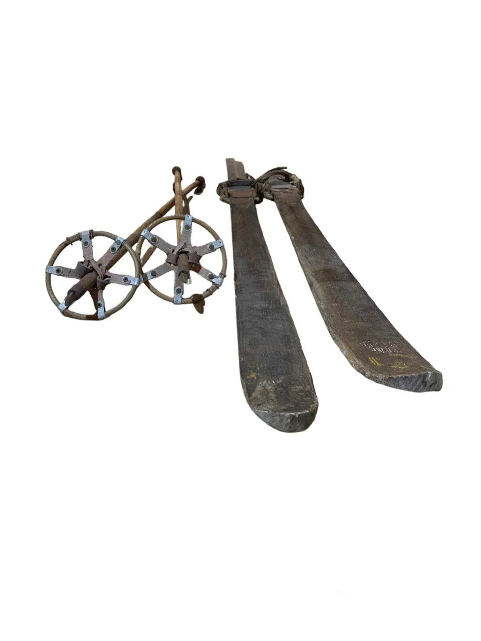 Esquís antiguos de madera con bastones, siempre originales, procedentes de los Alpes suizos, franceses y austriacos.