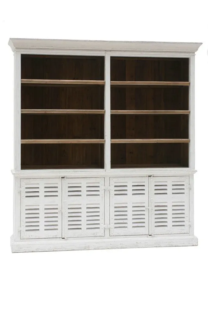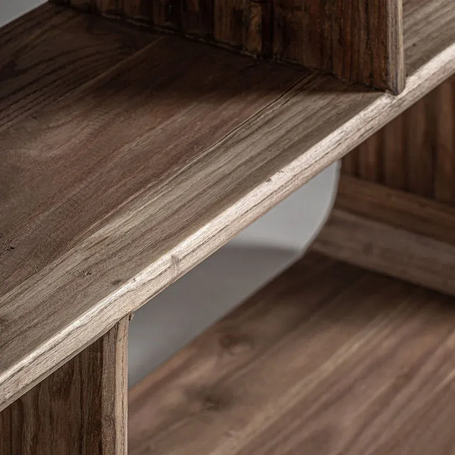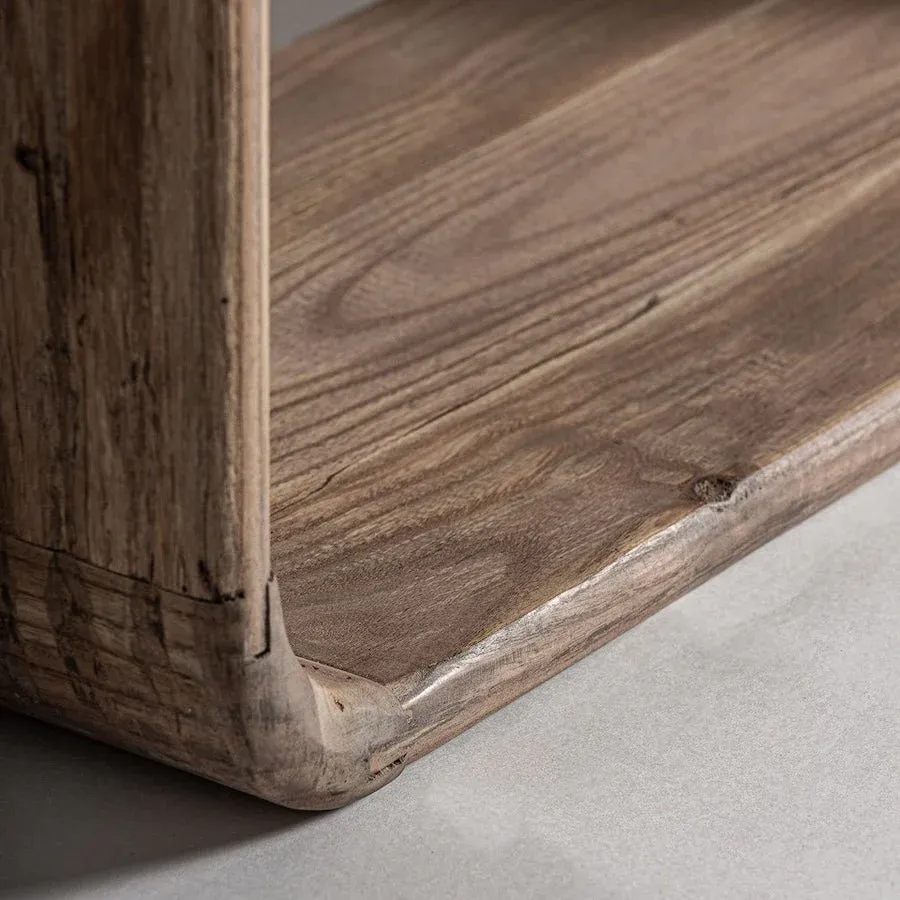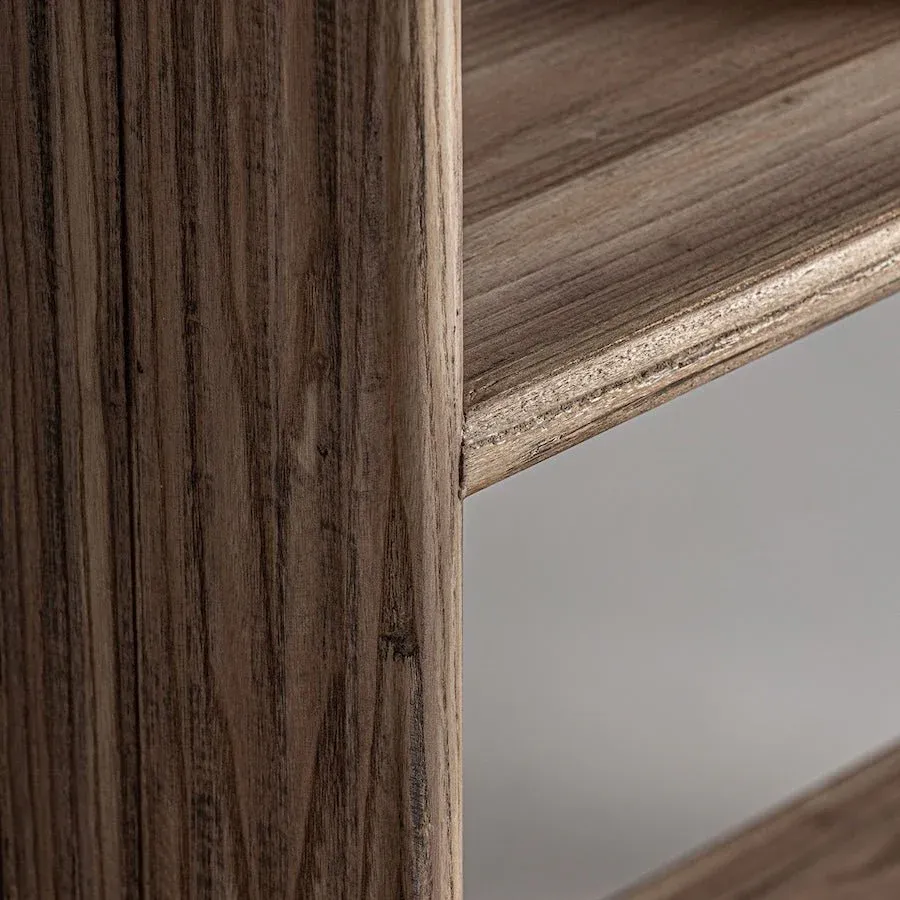 Librería de estilo colonial, fabricado en madera de olmo reciclado en color marrón claro.