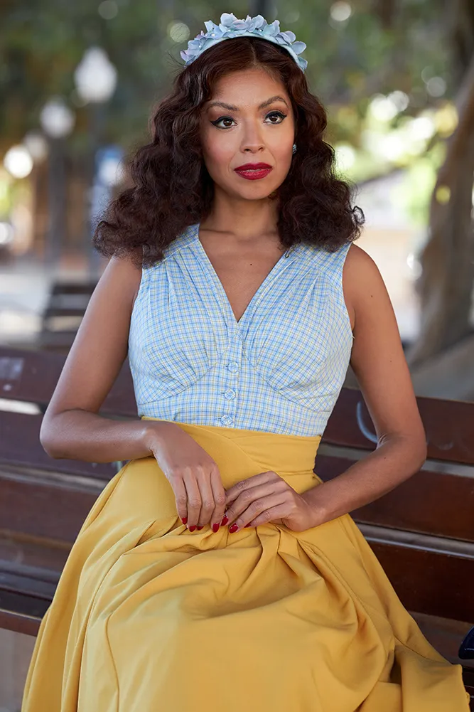 El patrón fresco de cuadros en amarillo claro y azul añade un toque vibrante y veraniego a cualquier conjunto, convirtiéndolo en una pieza destacada de tu colección. Ten en cuenta que Etenia-Sable está confeccionado con tela de algodón no elástica. Para aquellos que se encuentran entre tallas, recomendamos una talla más grande para garantizar el ajuste perfecto. No pierdas la oportunidad de realzar tu guardarropa de verano con este exquisito top.