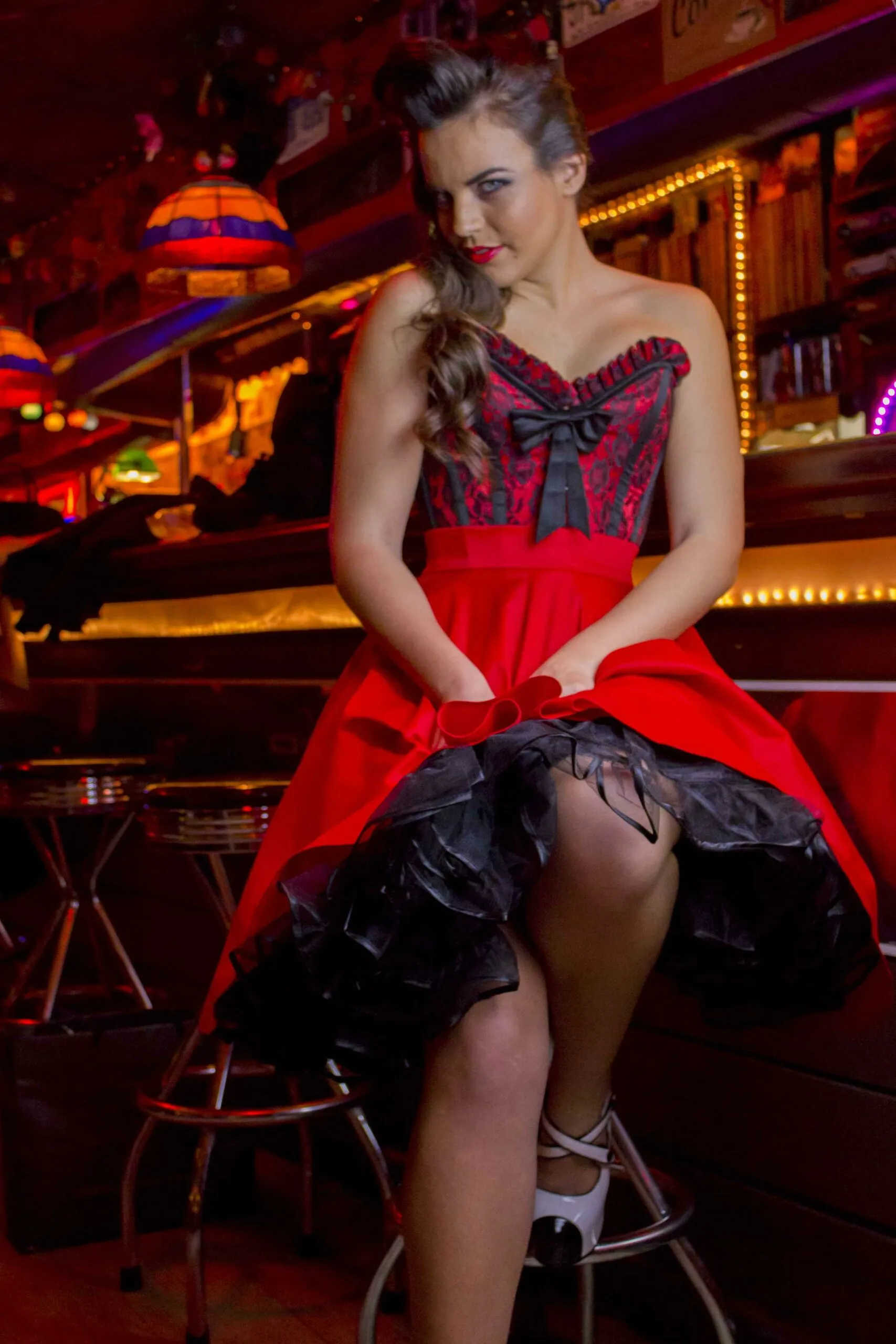 Falda de capa en color rojo, con cintura ancha y alta. Cremallera trasera con dos botones en la cintura. Admite todo tipo de enaguas de 23″ de largura. Composición: 98%algodon 2%elastan. Muy comoda y elegante. Tiene un ligero brillo en la tela. Alta calidad.