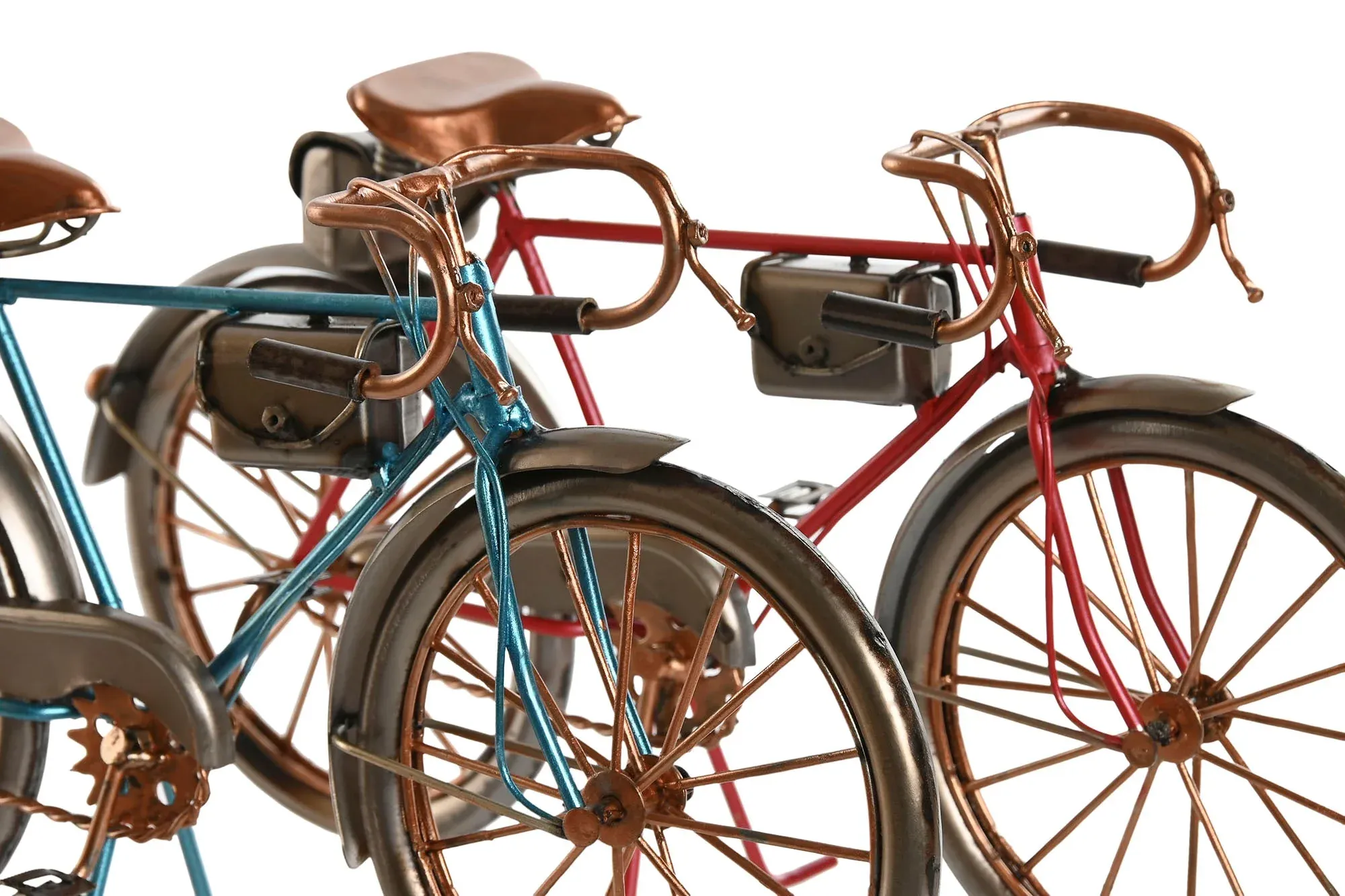 Preciosa figura de decoración en forma de bicicleta fabricada en metal en color rojo, azul.