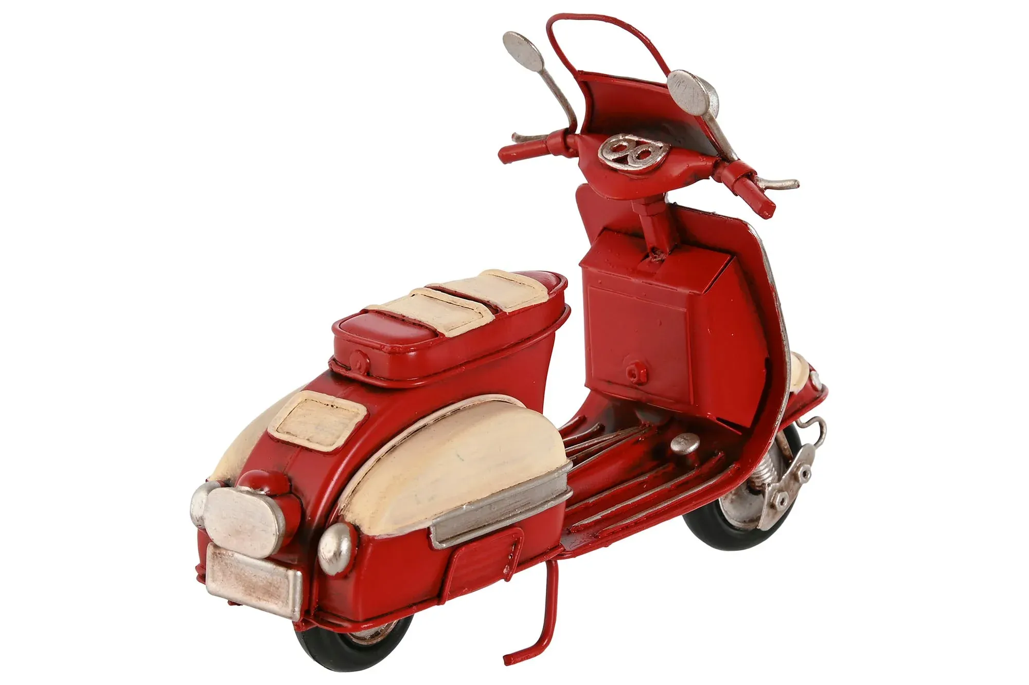 Preciosa figura de decoración en forma de motocicleta fabricada en metal en color azul, blanco, rojo.