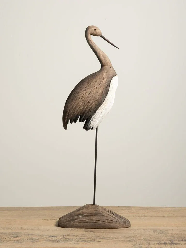 Original figura realizada en madera de pino en color natural y blanco con base de hierro de color negro.
