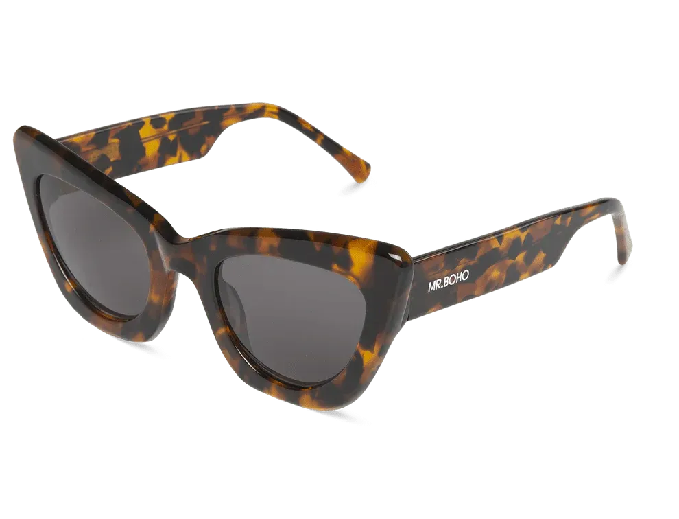 Las gafas de sol Mr. Boho Caparica vienen en una variedad de colores vibrantes como las monturas Dotted Brown de colores blanco, negro, negro-marrón-verde, marrón-blanco, miel-blanco, blanco-lila o marrón y los cristales gris. Elige el par que combine mejor con tu estilo de la colección de gafas de sol Mr. Boho.