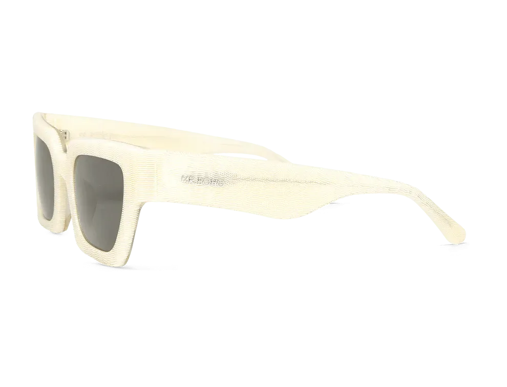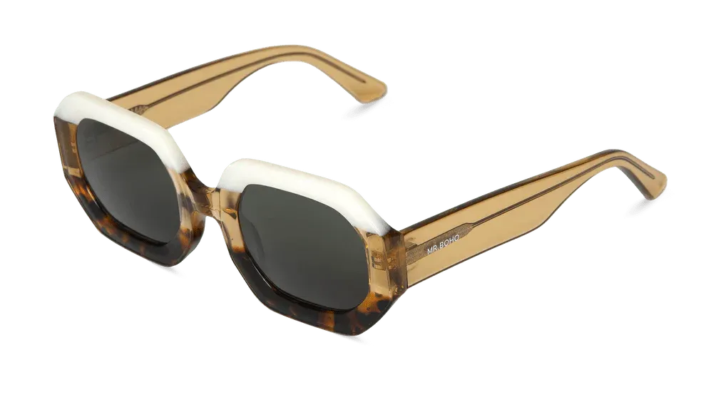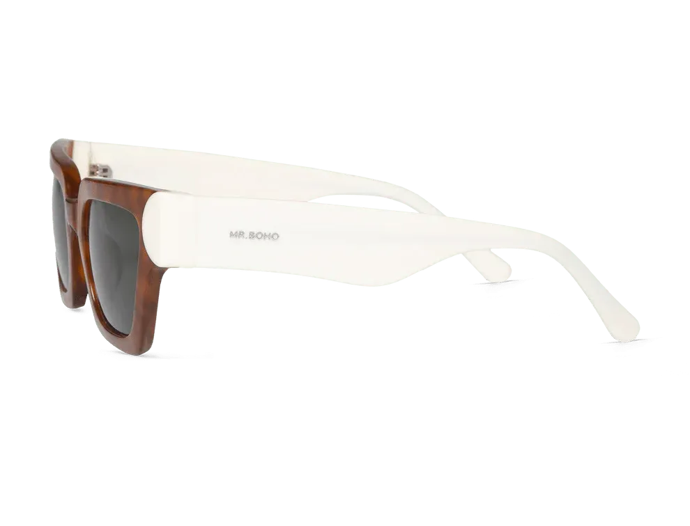 Las gafas de sol Mr. Boho Frelard vienen en una variedad de colores vibrantes como las monturas de colores blanco, negro, marrón-negro, marrón-negro-verde, marrón, violeta/lila, marrón-blanco, marrón-negro-transparente o rojo Dotted Red y los cristales gris. Elige el par que combine mejor con tu estilo de la colección de gafas de sol Mr. Boho.