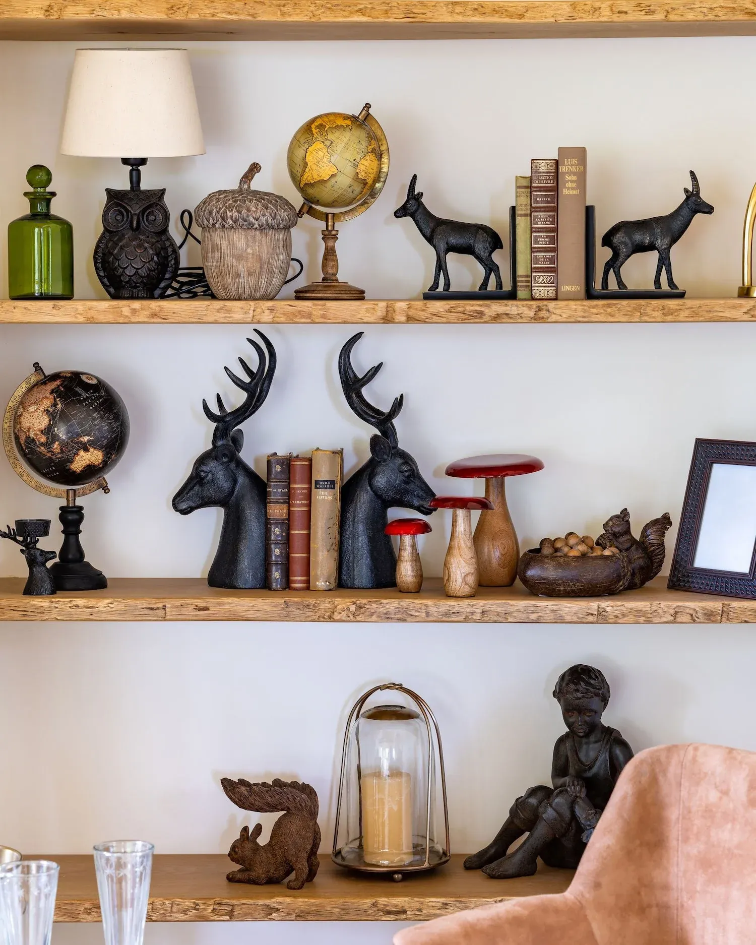 Preciosa figura de decoración en forma de bola del mundo fabricado en hierro y madera de mango color negro.