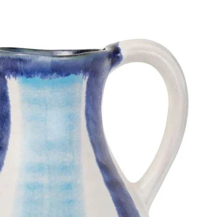 Preciosa jarra fabricada en arcilla con colores azul, blanco y celeste.