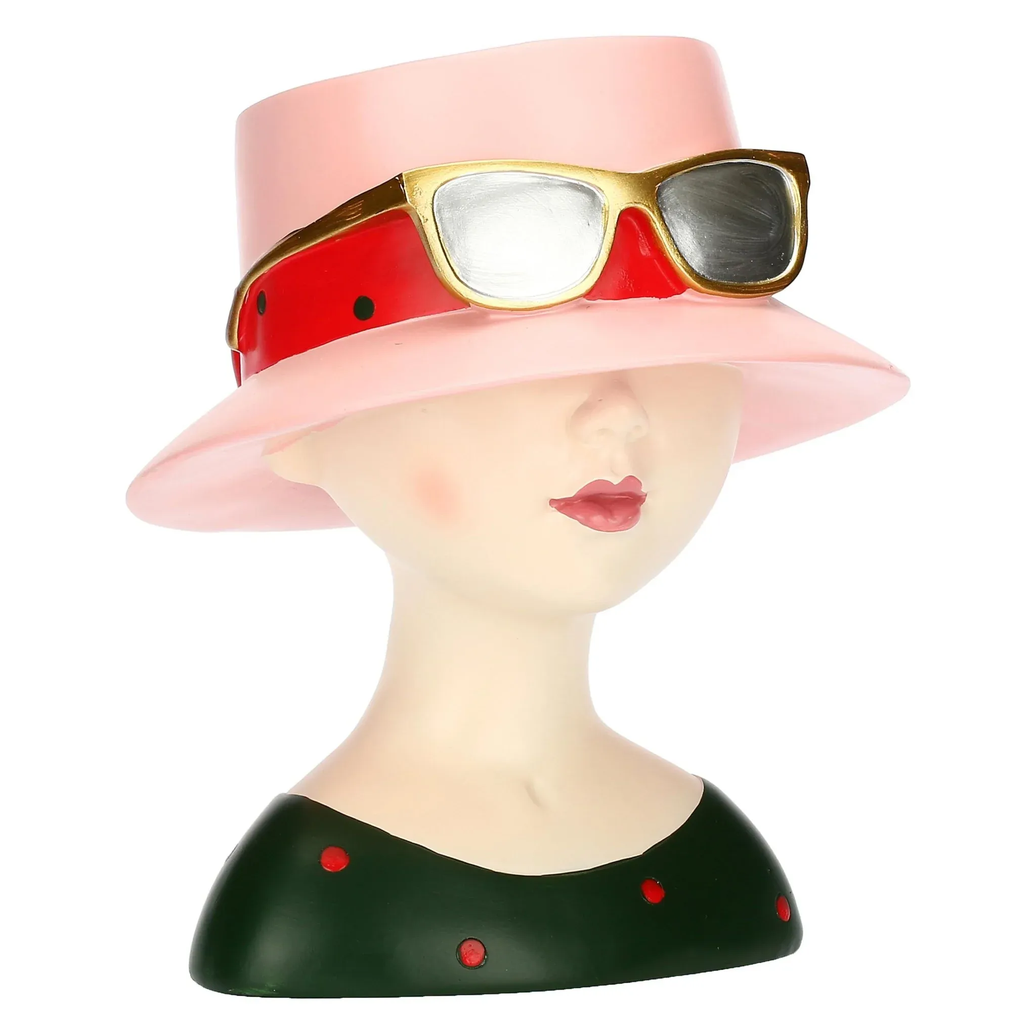 Original jarrón fabricado en resina con colores rosa, verde y rojo.
