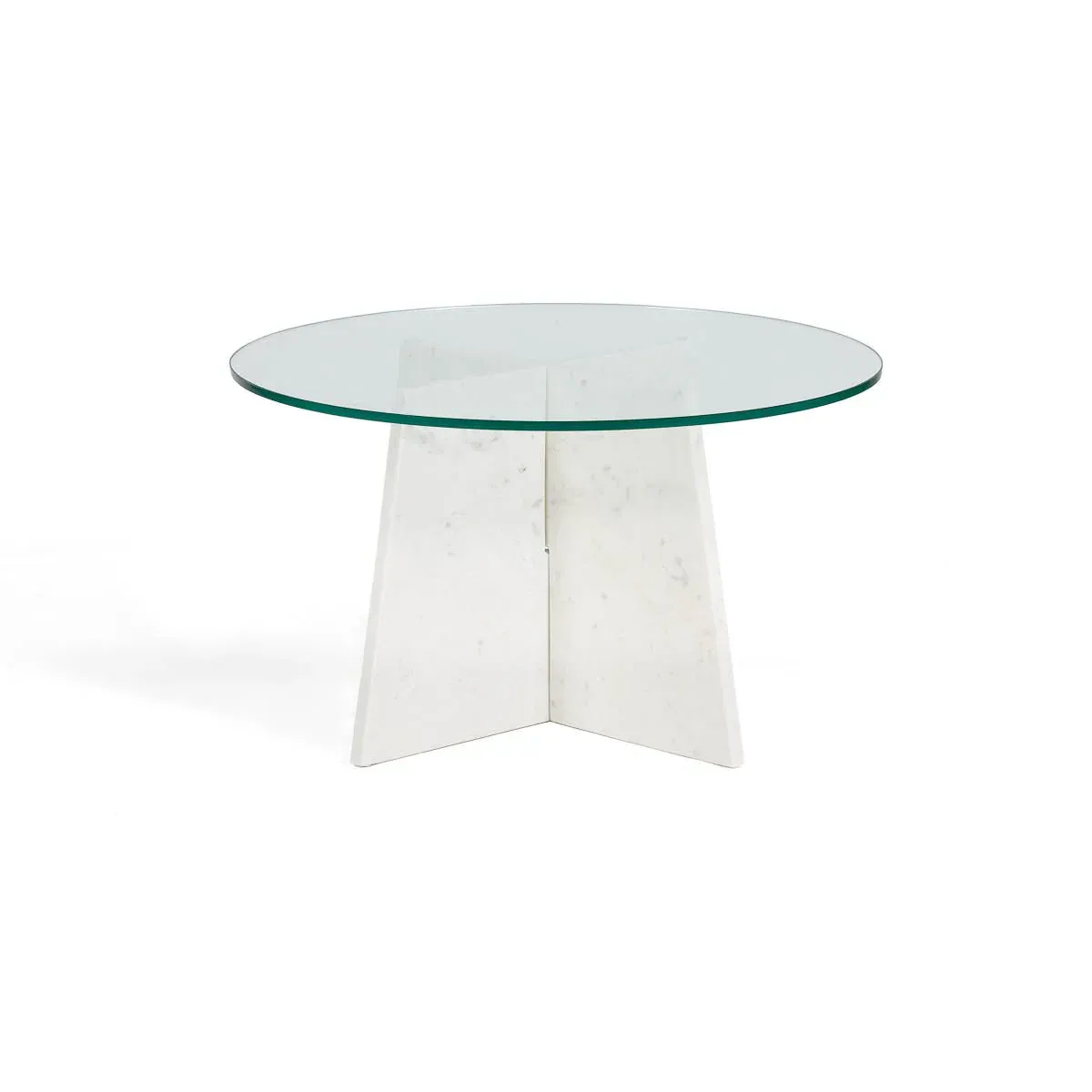 Juego de 2 mesas de centro de estilo art deco, fabricado en travertino en color marrón claro.