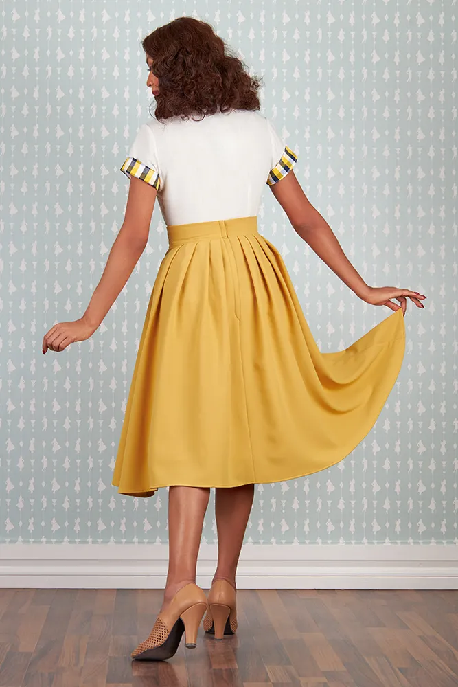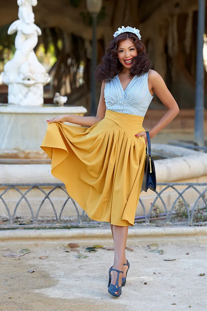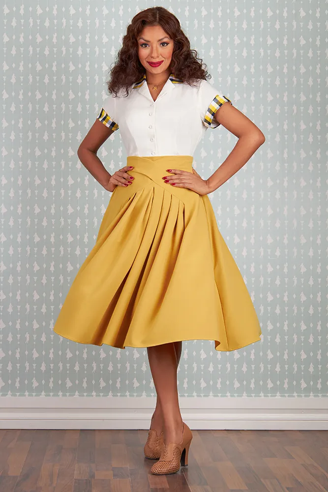 Kalani-Naia Miss Candy, Pliegues durante días… ¡Brilla como el sol con nuestra falda de cintura alta Kalani-Naia! Muévete y muévete todo el día todos los días con esta favorecedora falda con vuelo inspirada en los años 50, diseñada con favorecedores pliegues delanteros y traseros para una silueta atemporal y divertida.