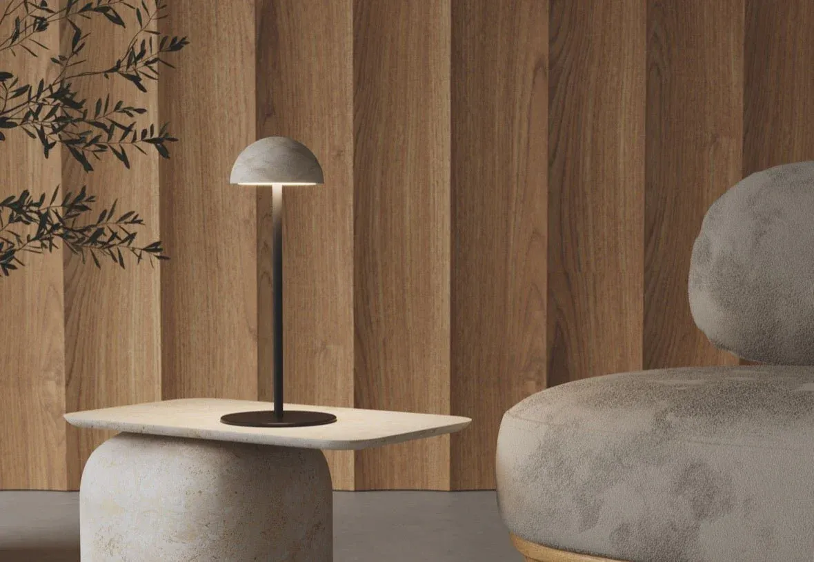 Preciosa lámpara de sobremesa de diseño fabricada en metal y mármol. Disponibilidad de regulador en cable.