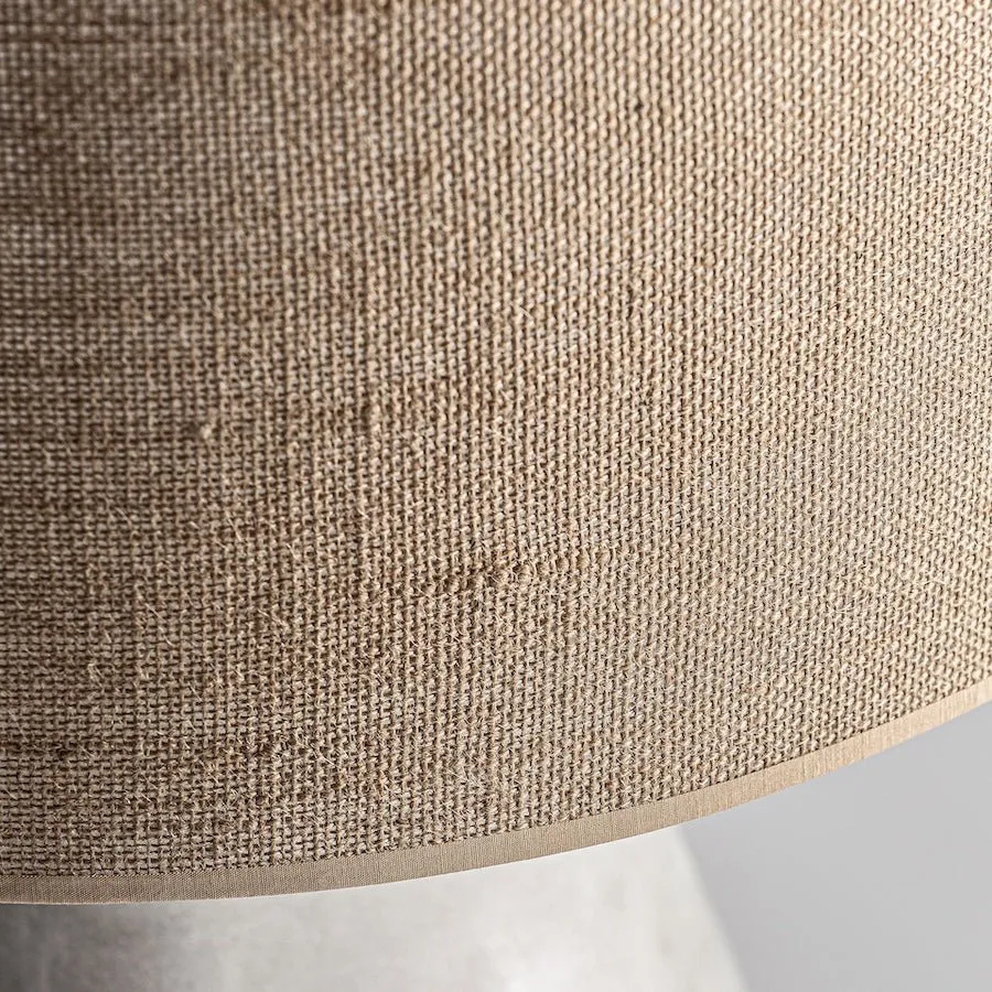 Lámpara de sobremesa de estilo contemporáneo, fabricado en yute en color marrón claro, combinado con terracota en color negra con acabado mate. Producto desmontable.