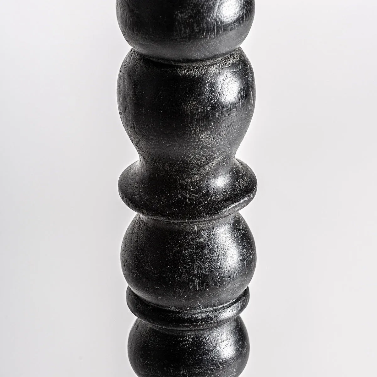 Lámpara de pie de estilo clásico, fabricado en madera de mango en color negro, combinado con algodón en color blanco. Producto desmontable.