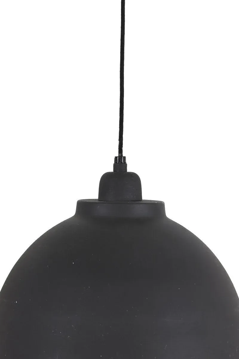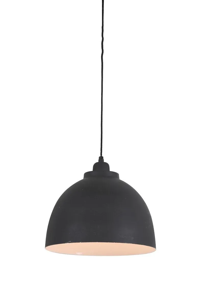 Lámpara de techo fabricada en metal de color negro con la parte interior en porcelánico color blanco.