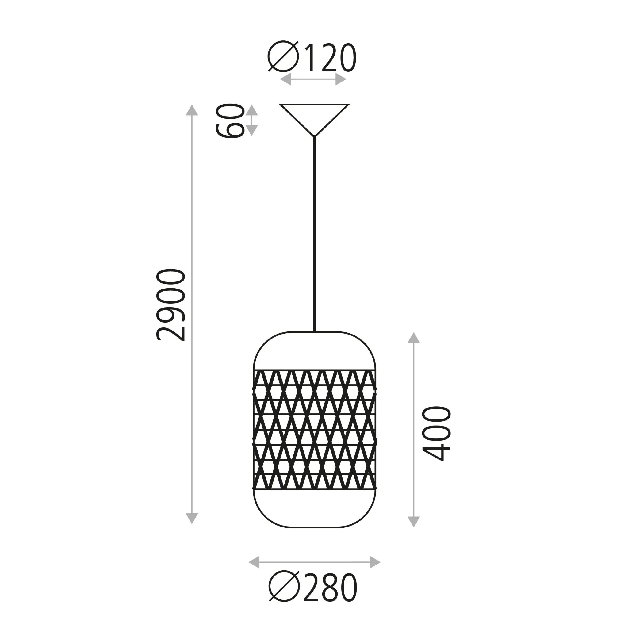 Esta lámpara colgante dispone de un florón negro de metal y un cable también negro que se puede regular fácilmente ofreciéndonos una altura máxima de 290 cm.