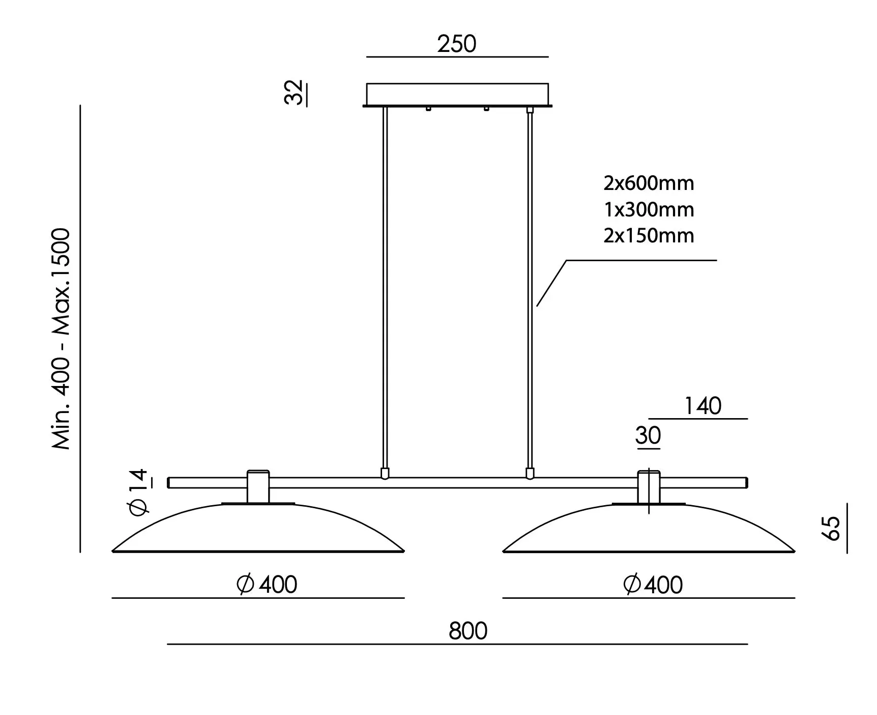 Bombilla: 2 x Placa LED 10W, 2700K, 1800lm