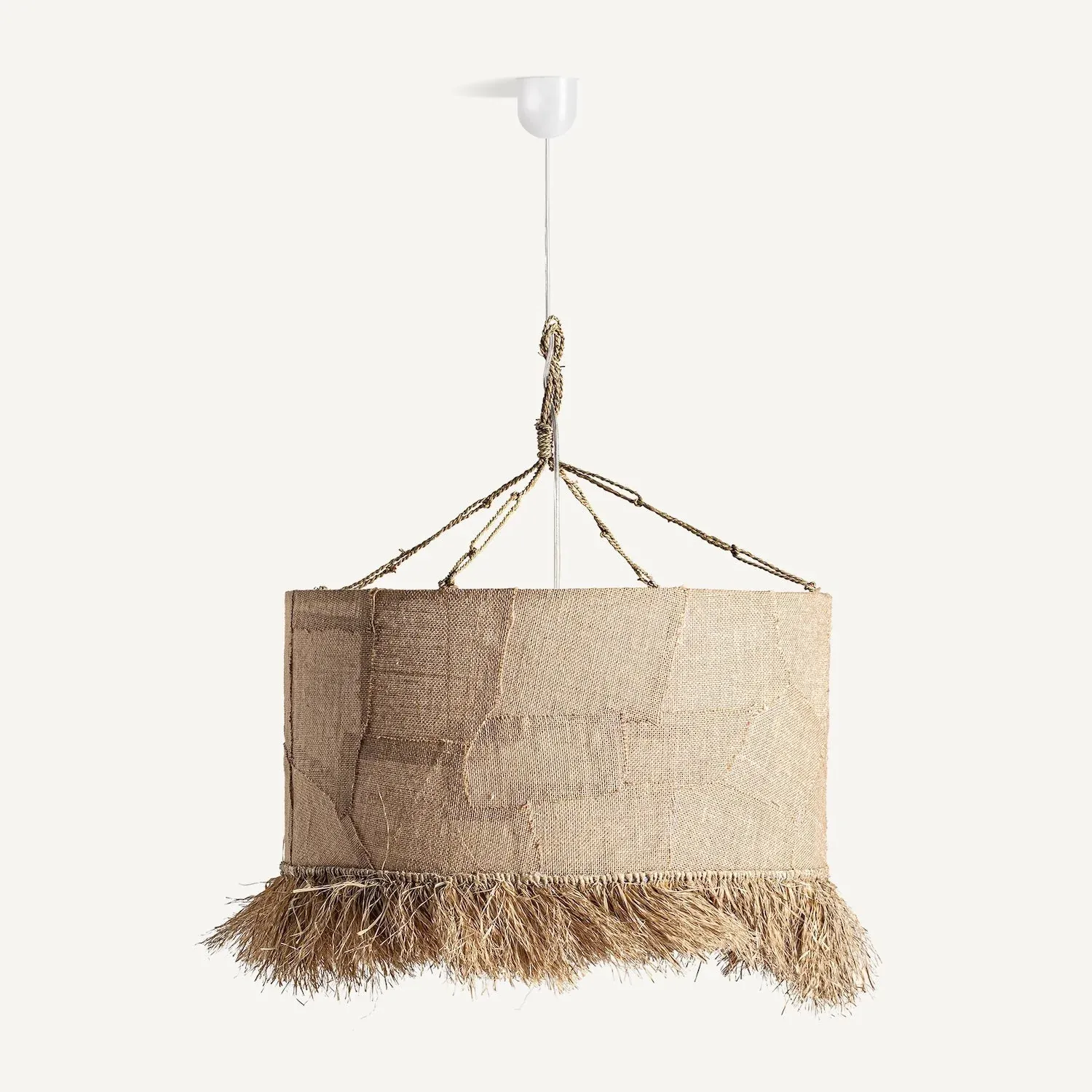 Lámpara de colgar de estilo boho, fabricado en yute en color marrón.