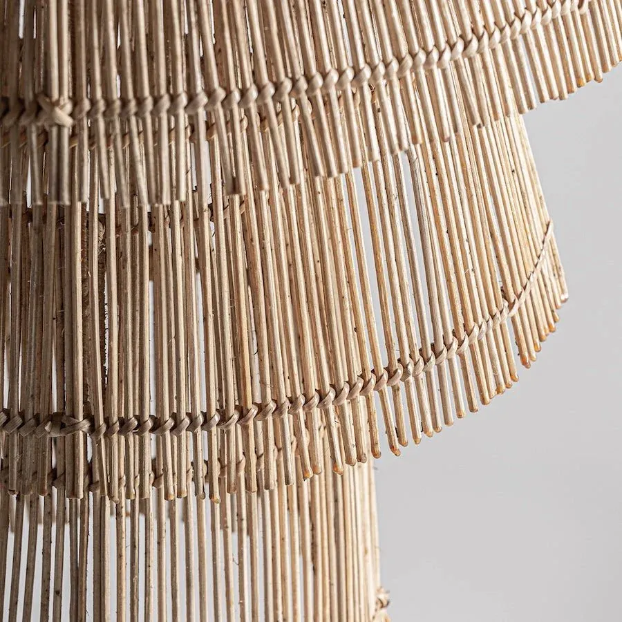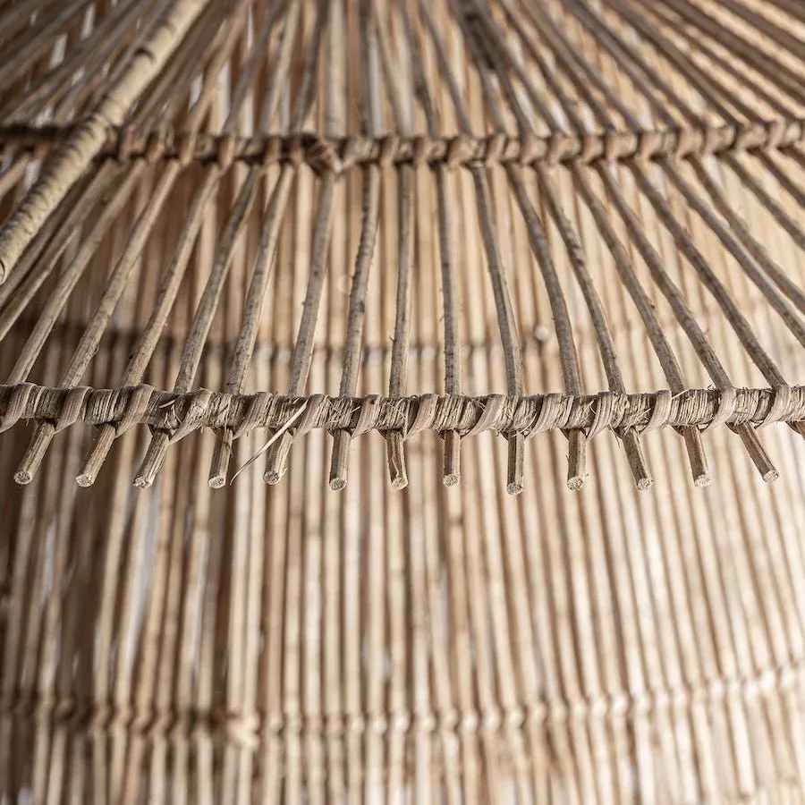 Lámpara de colgar de estilo boho, fabricado en ratán en color marrón.