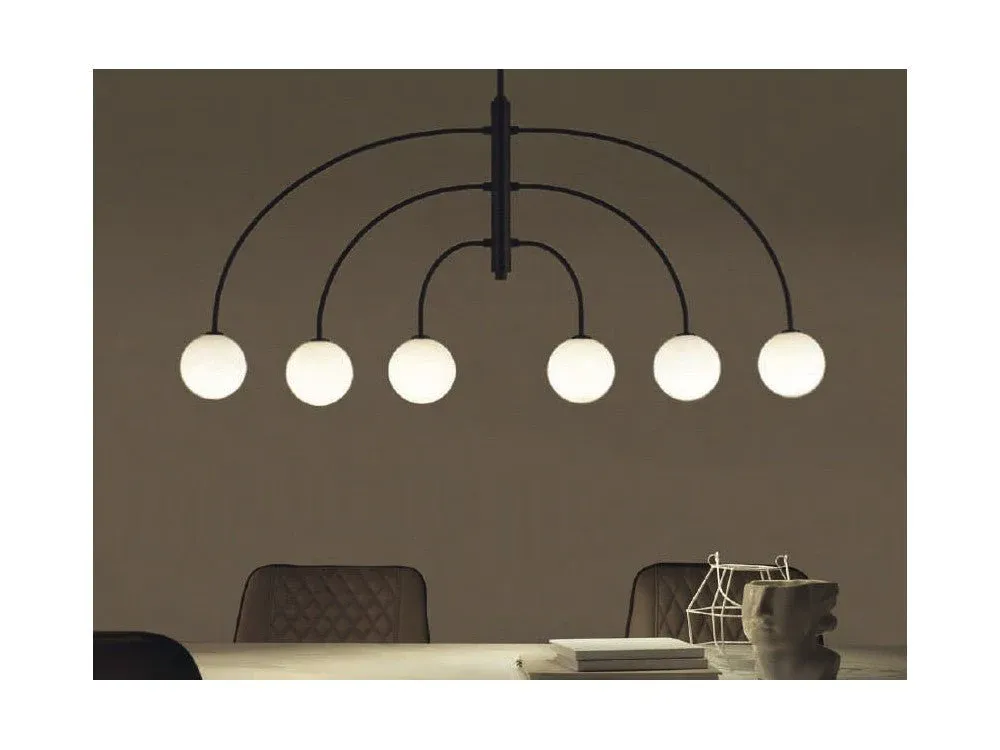 Lámpara de techo de diseño fabricada en metal de color negro mate y tulipas, que están incluidas, de vidrio en color opal/transparente.
