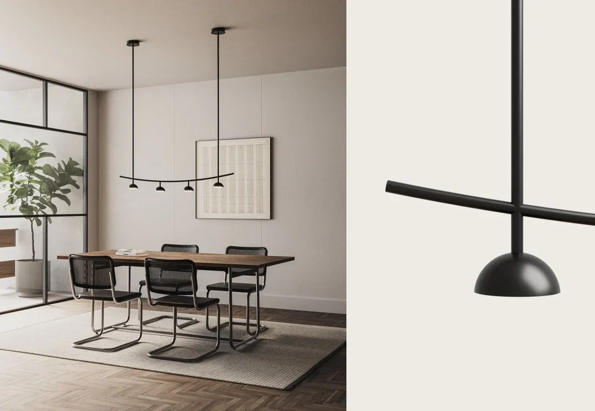 Lámpara de techo de diseño moderno y líneas rectas fabricada en metal. Acabado en color negro mate.