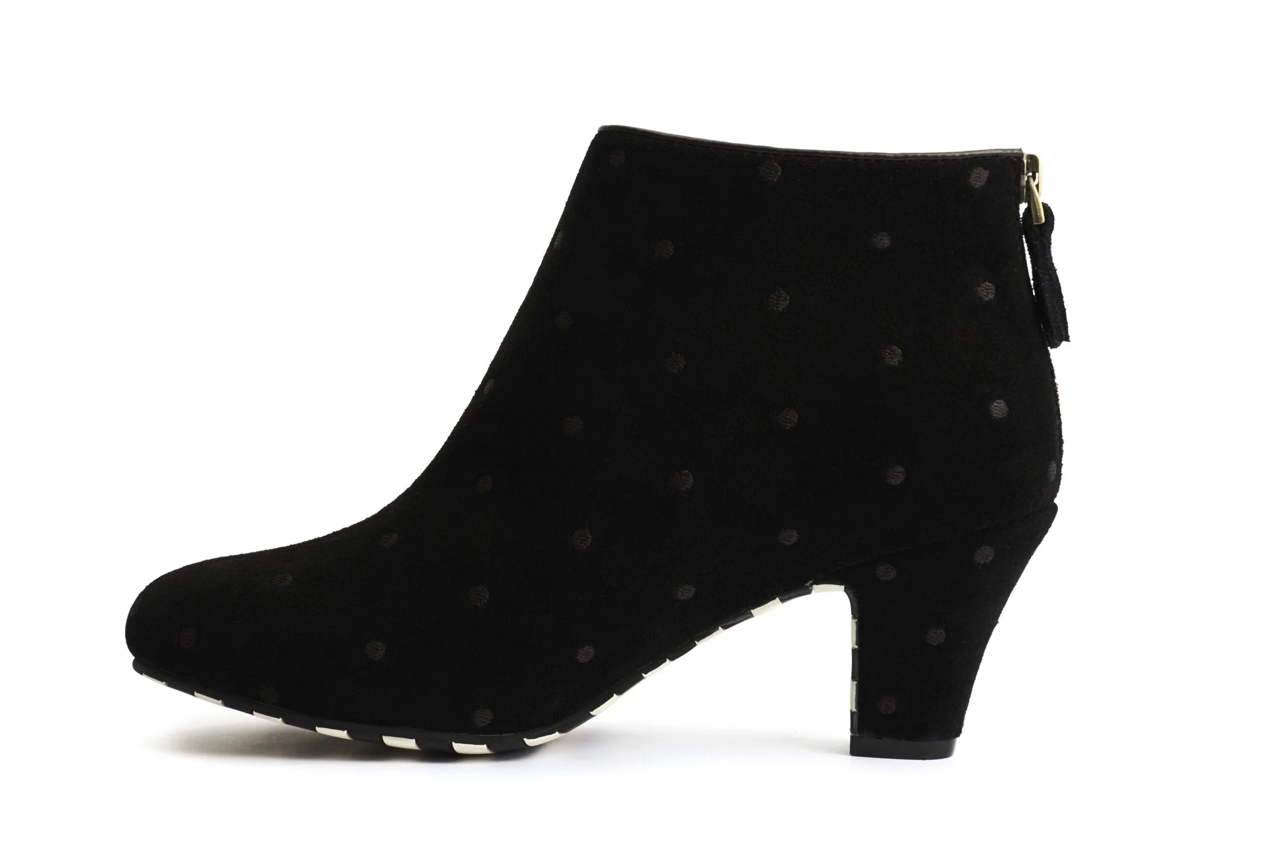 Botin de piel de Lola Ramona. Muy comodo, suela de goma. Lunares bordados en el ante.