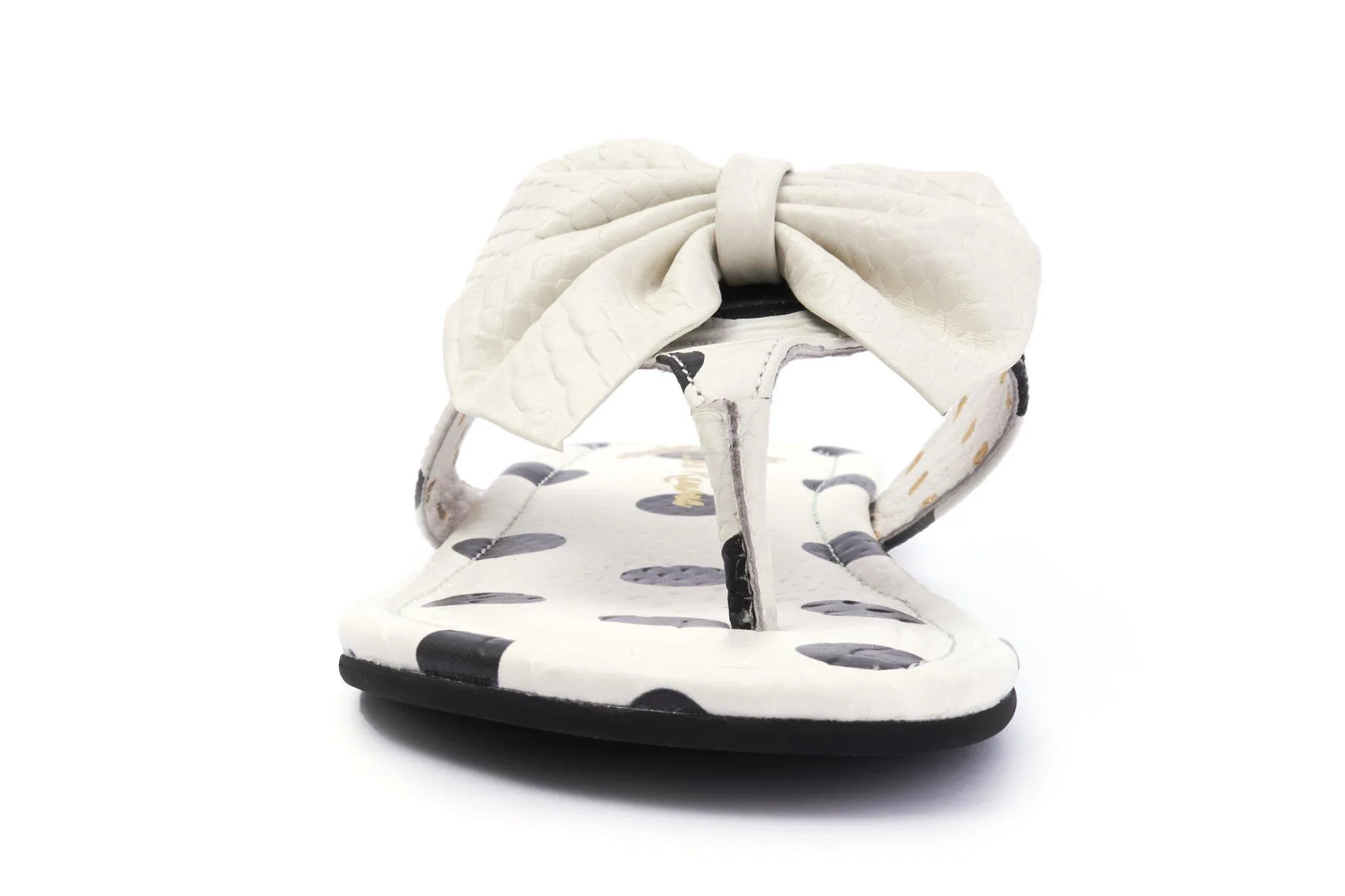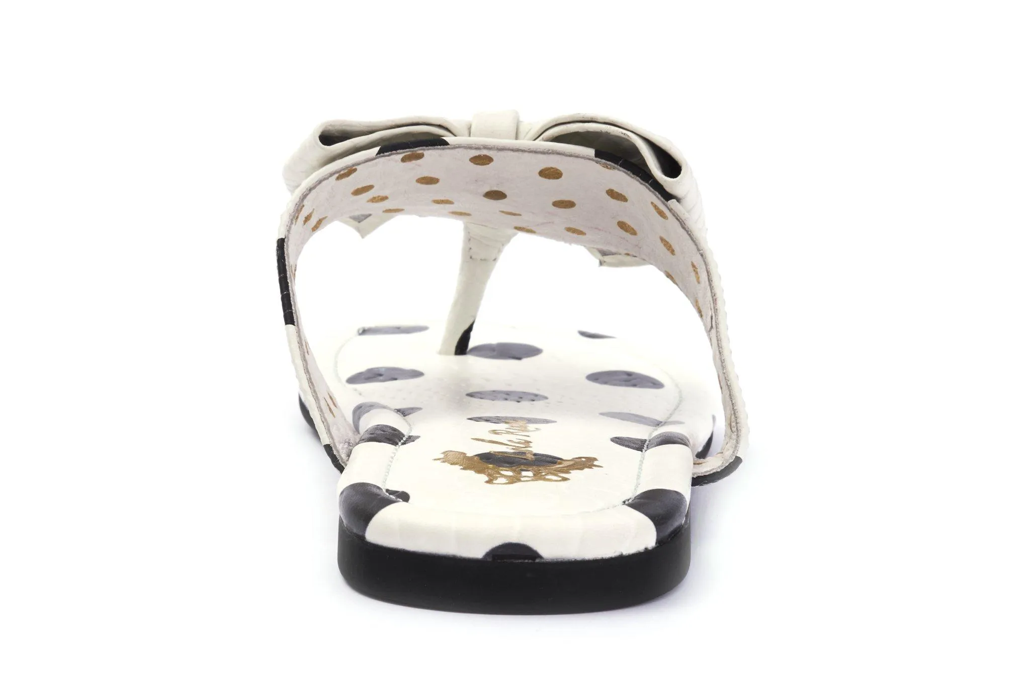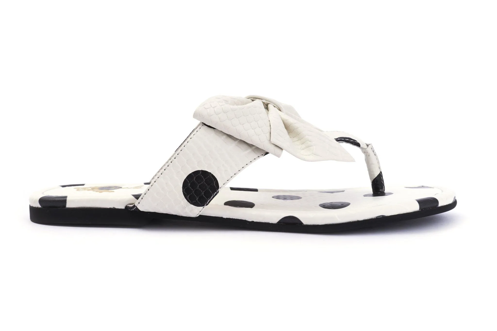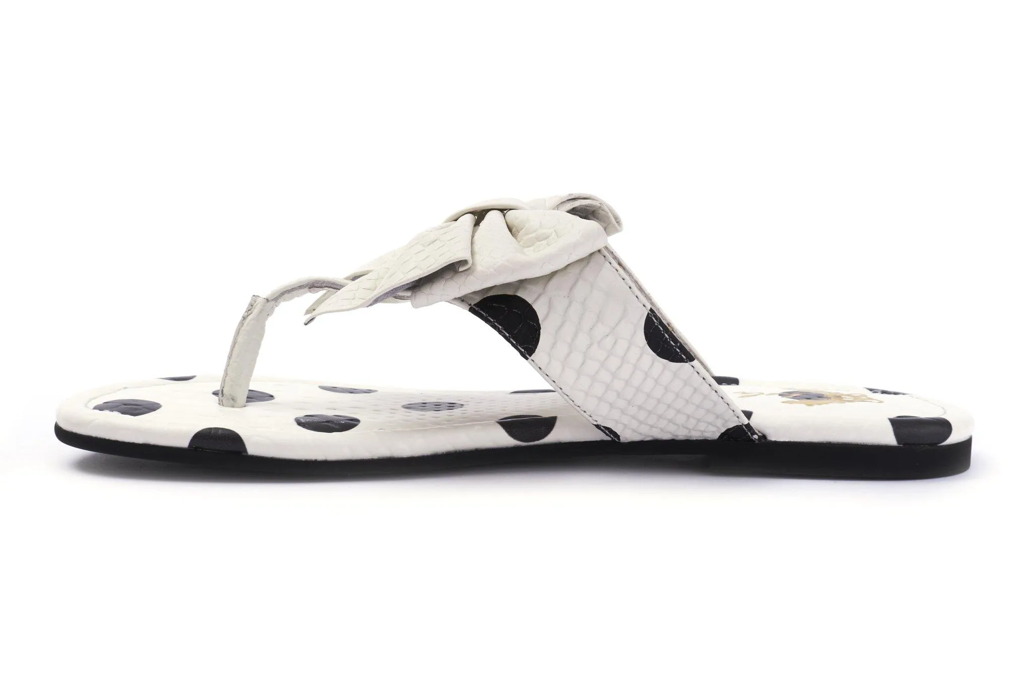 Sandalia de dedo con lazo en el empeine. Blanco y negro a lunares. Muy comoda.
