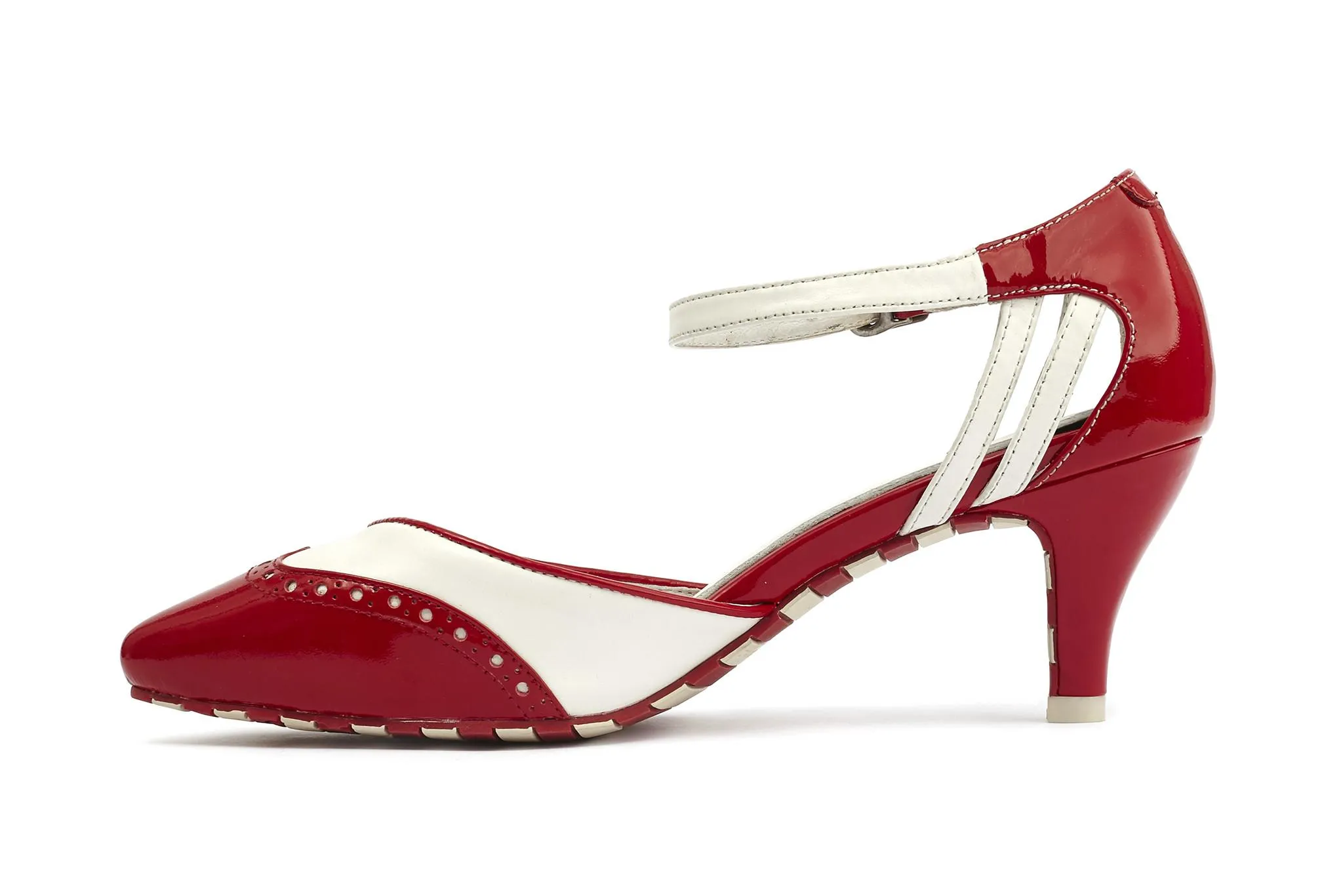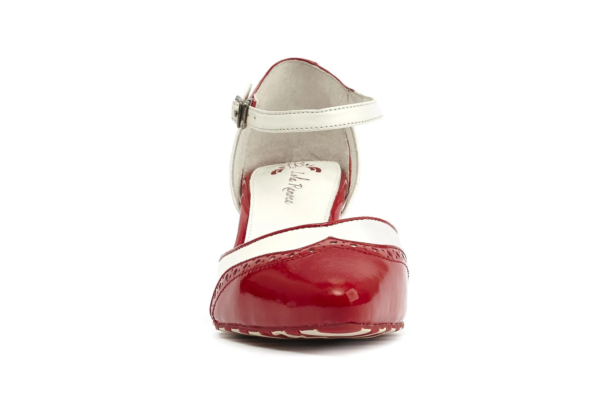 Zapato de piel en color rojo y blanco con charol. Muy comodos y elegantes. Lola Ramona Design