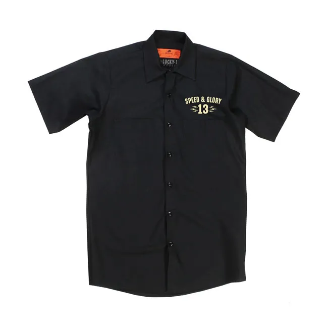 La camiseta de trabajador Lucky 13 es una camiseta de trabajador para hombre confeccionada 100% algodón. Hay un estampado en la espalda con el diseño Lucky 13 y también un pequeño estampado en el lado izquierdo del pecho.