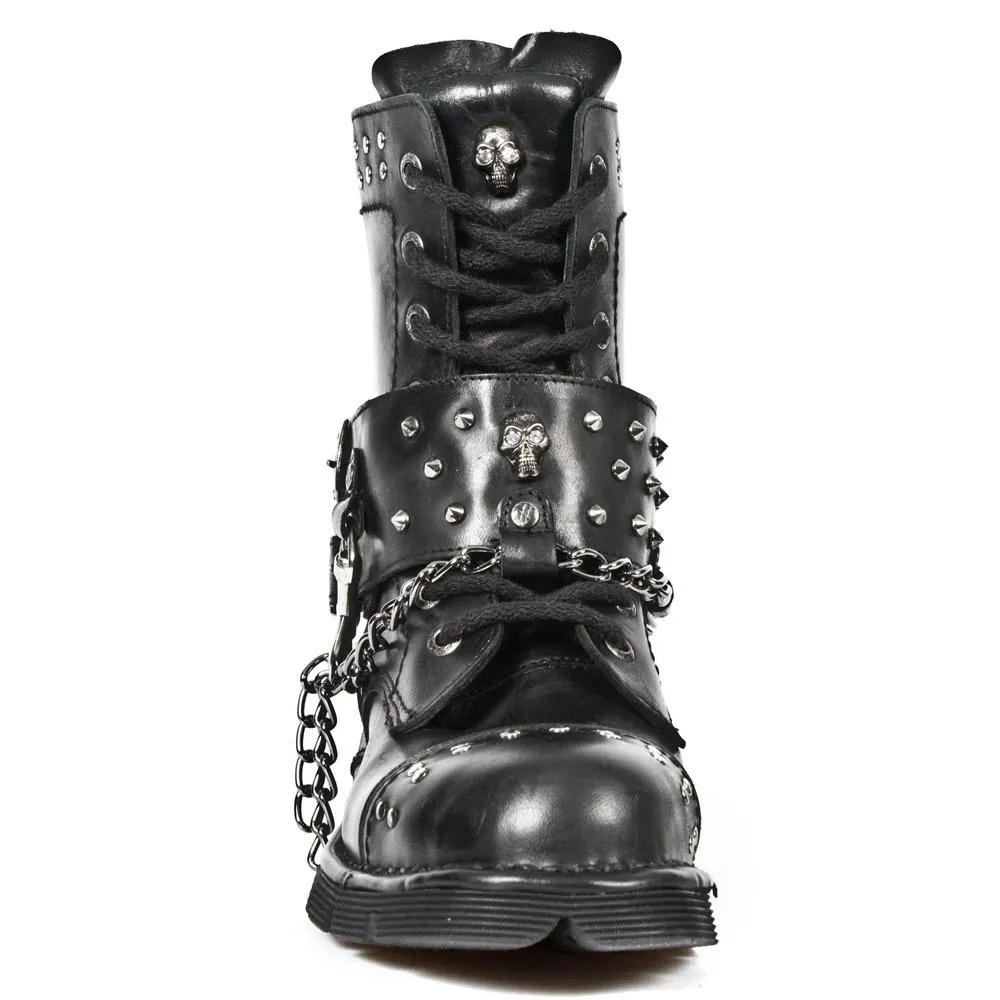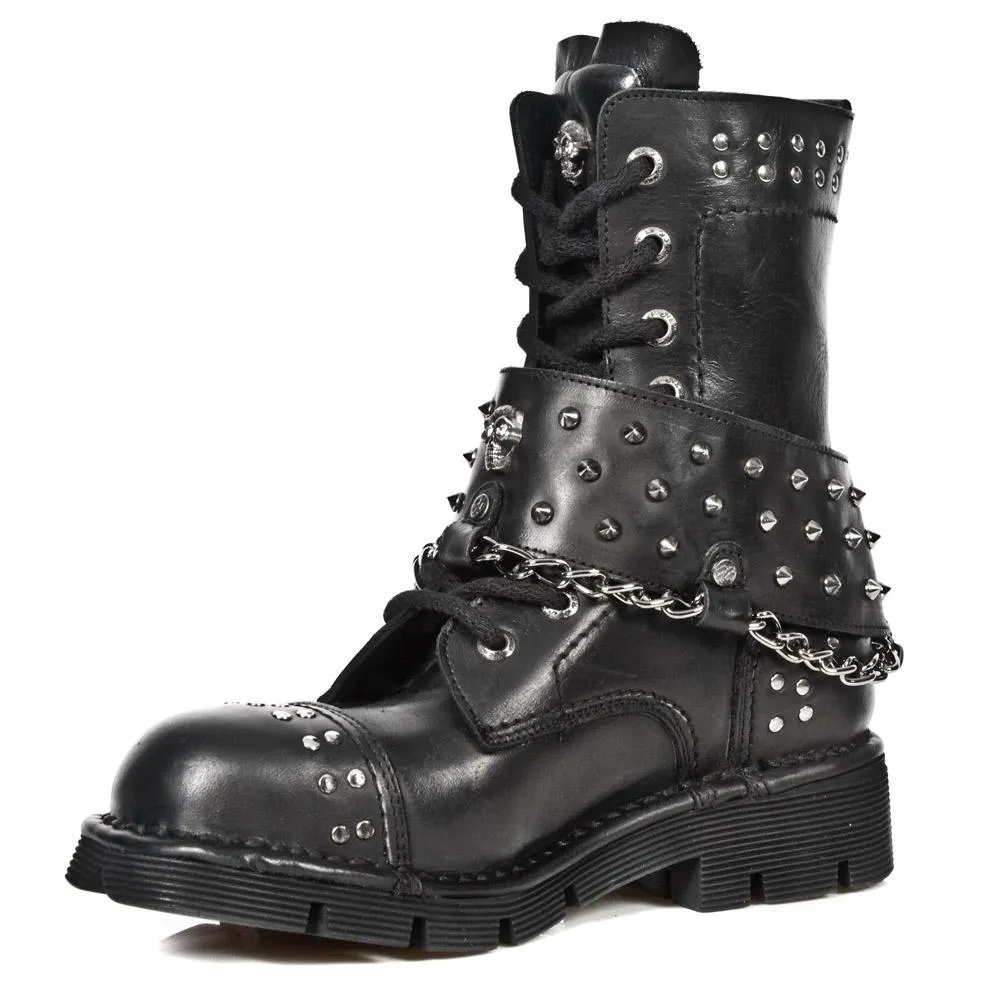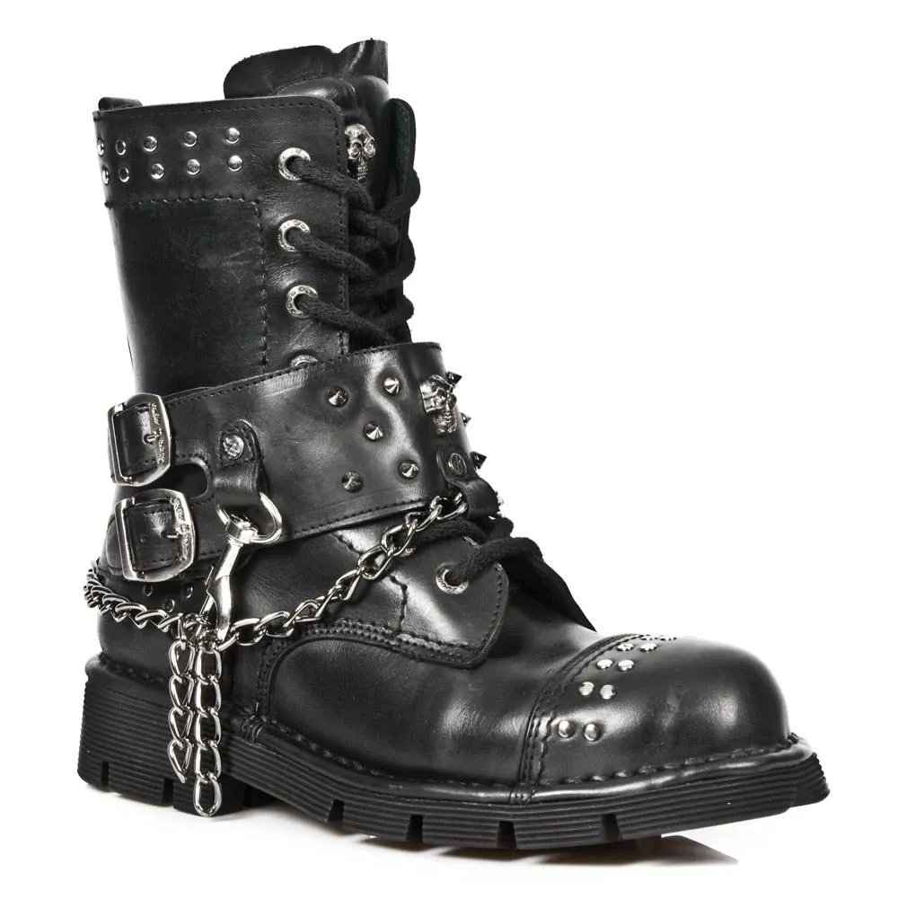 Botas de piel de vacuno con detalles metalicos. Altura de la caña 17 cm, altura del tacon 4 cm altura de la plataforma 2cm. Muy comodas gracias a su suela de goma. Made in Spain.