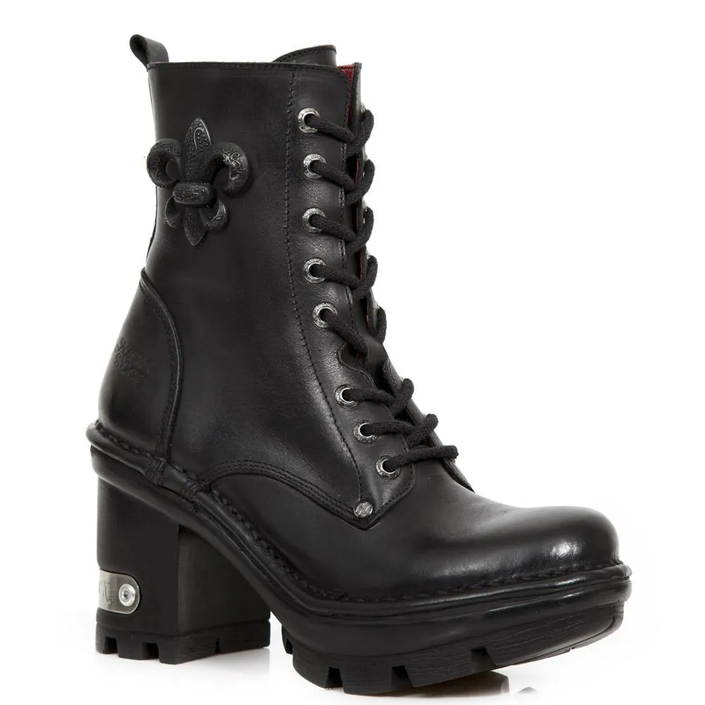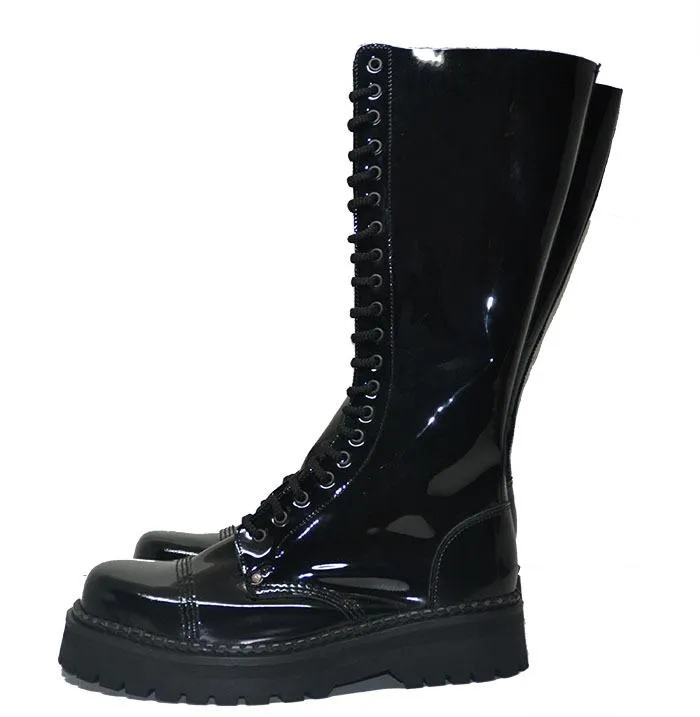 Botas de piel de vacuno con detalles metalicos. Altura de la caña 17.50cm, altura del tacon 4 cm y de la plataforma 2cm. Muy comodas gracias a su suela de goma.