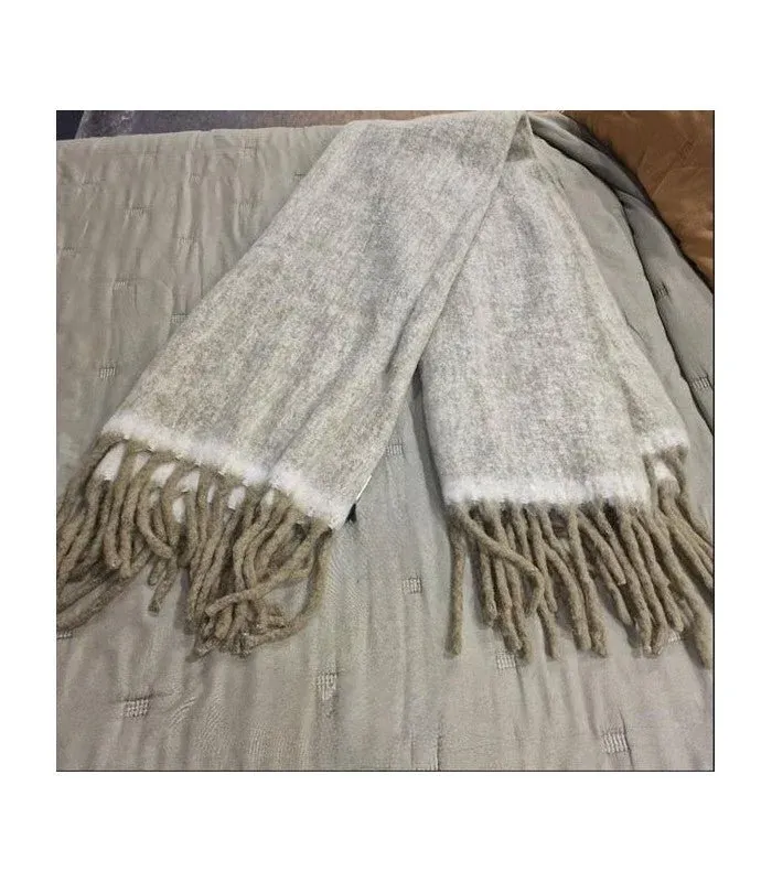 Manta de invierno fabricada 50% algodón y 50% acrílico. Disponible en colores gris claro, mostaza, piedra, rosa claro, verde savia.