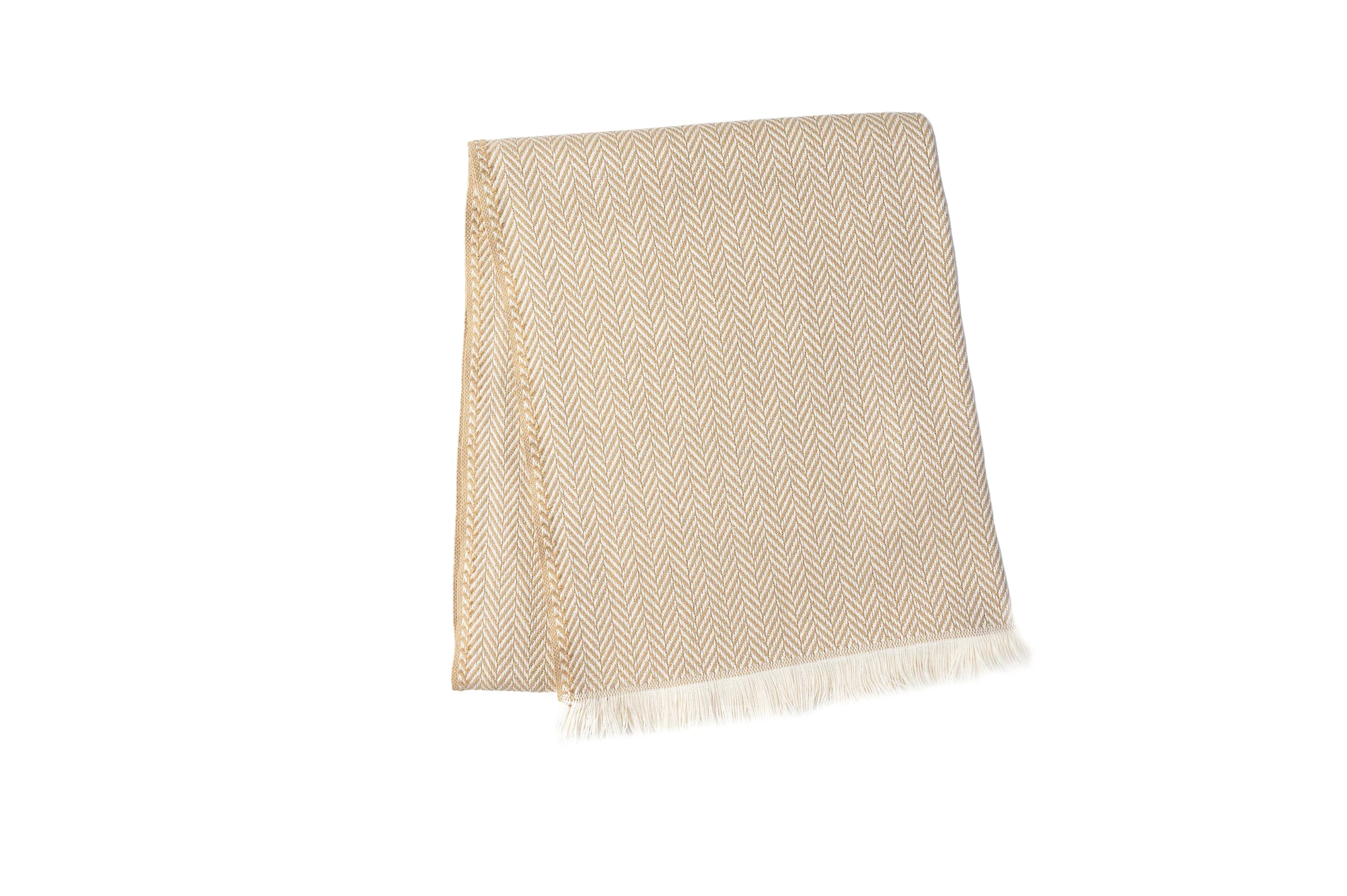 Manta de invierno fabricada 50% algodón y 50% acrílico. Disponible en colores mostaza, piedra, gris claro, celeste y turquesa.