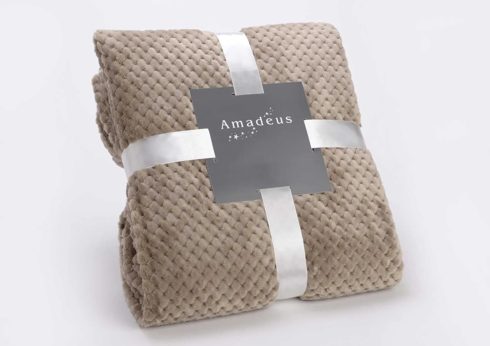 Preciosa y acogedora manta fabricada en 100% poliéster en colores verde esmeralda, crema y topo.