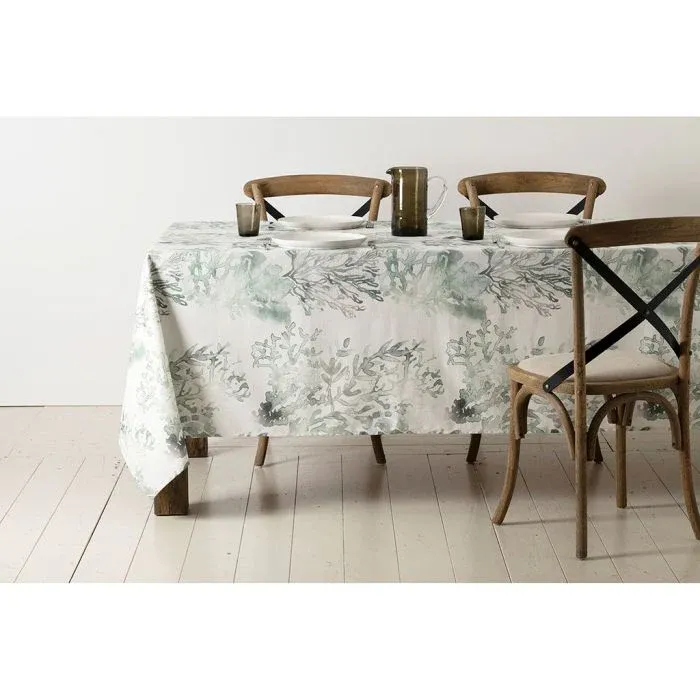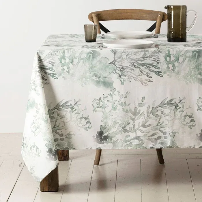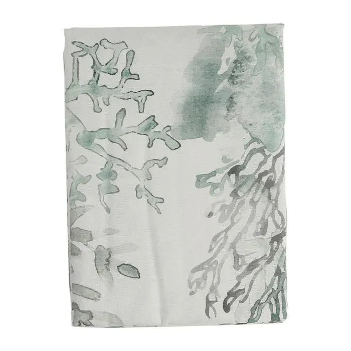 Precioso mantel de algodón con dibujo de corales en color cardenillo y verde.