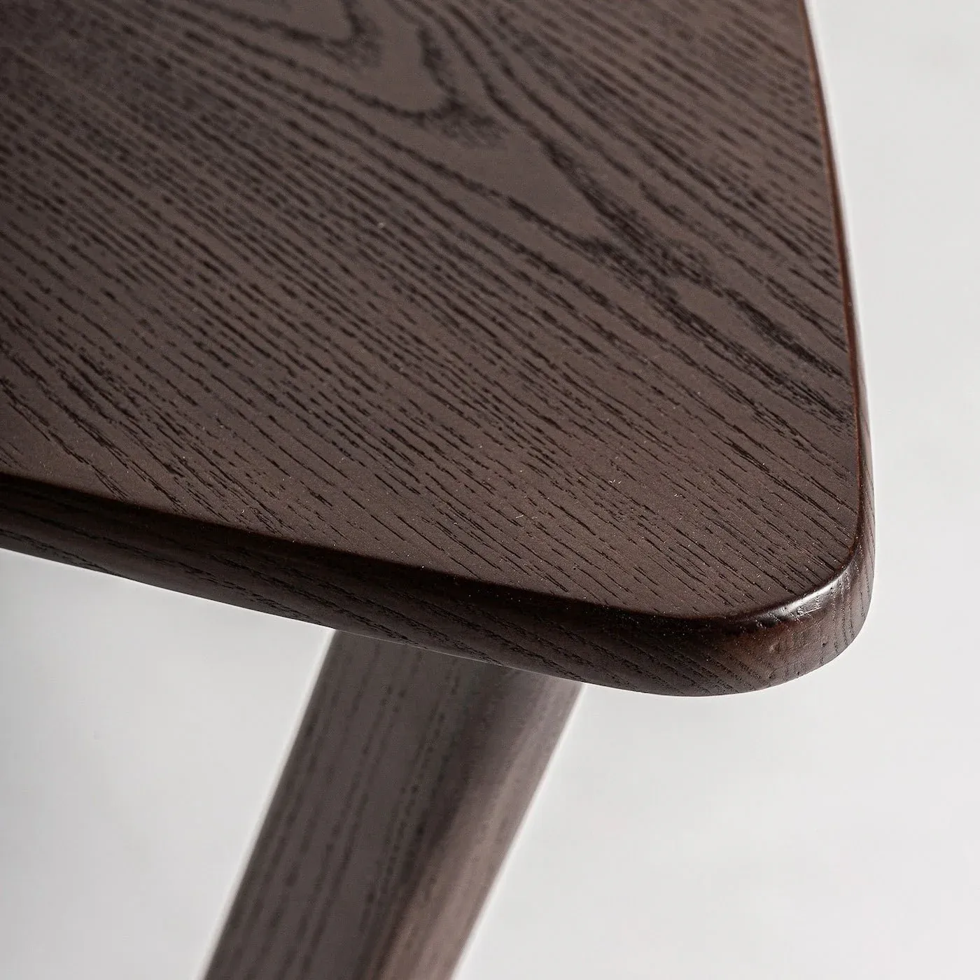 Mesa auxiliar de estilo art deco, fabricado en madera de fresno en color marrón.